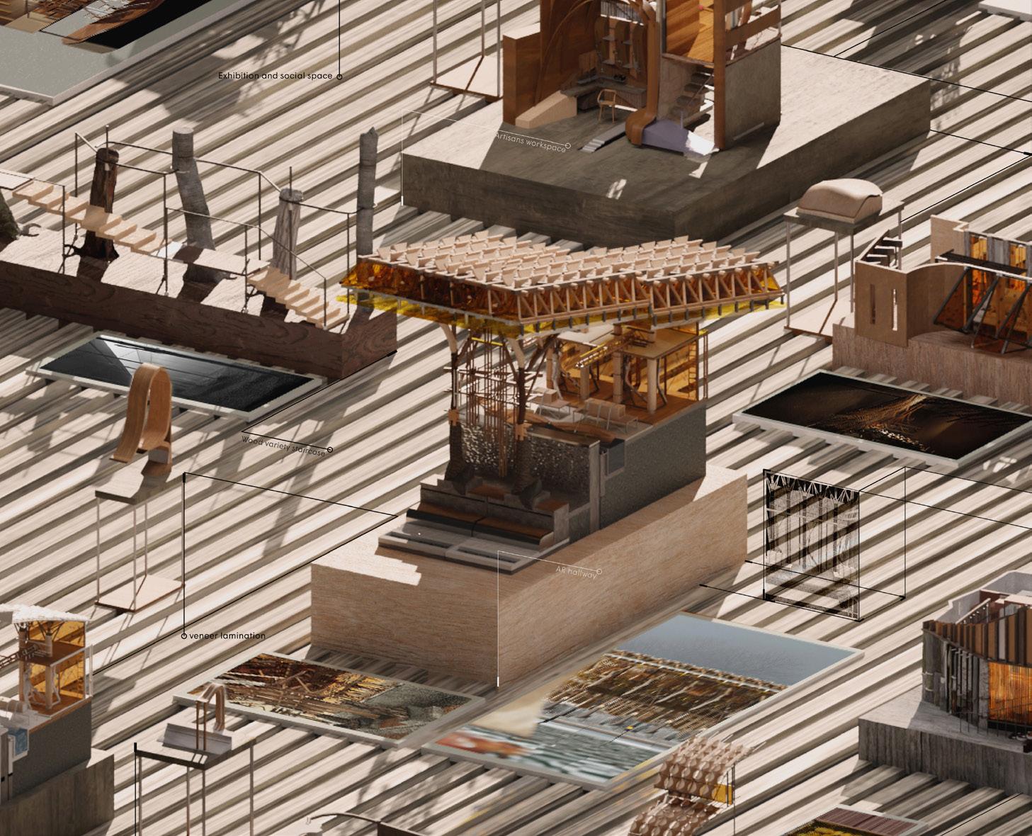 The proposal questions the symbiotic relationship between human and nature, to what extend can our building be “supernatural”? It uses Tegel as a testbed to explore innovative timber construction methods with the assistance of augmented reality (AR) technology. The data collected within this project will thus be fed into the 2050 Tegel airport vision to create the future sustainable hub of Berlin. isabella.shen.20@ucl.ac.uk