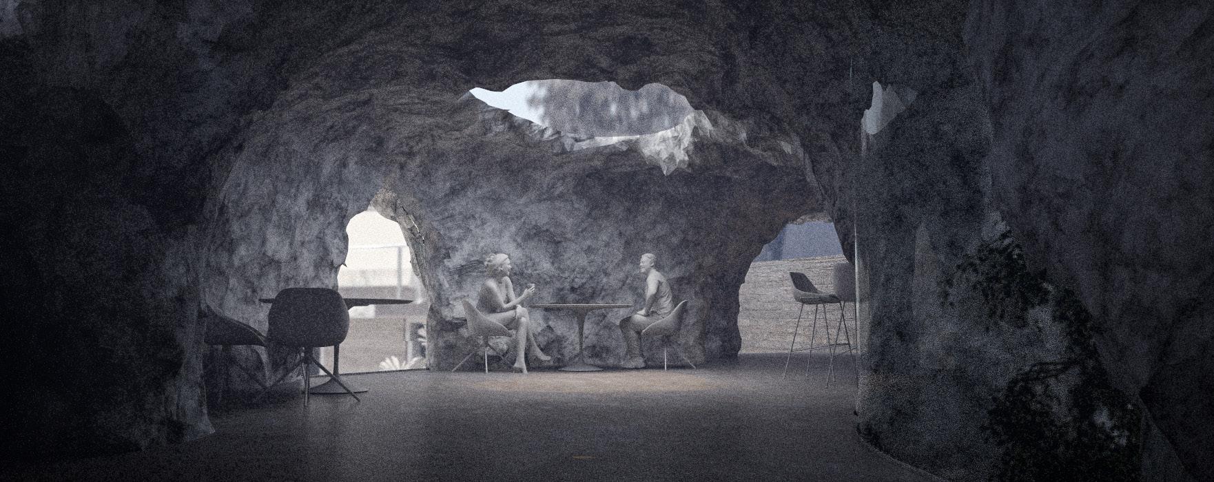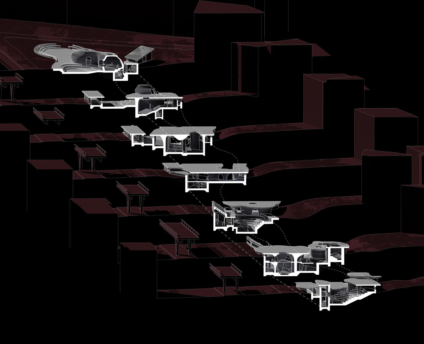 Decompression emerges within Berlin’s counterculture as an opportunity to challenge the tenets of capitalism, offering a primal landscape for recalibration within the club scene. By bridging hedonism and post-consumption ideologies, this project explores the concept of a postcapitalist comedown while immersing individuals in a progressively natural and sensory-specific environment, suggesting new socio-spatial typologies in a speculative era beyond consumption.