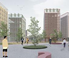 The project represents a clear strategy for existing buildings: start using them as is, as soon as possible! Some buildings are introduced in the first phase, followed by others in the second. In the latter, the team introduces the idea of reusing the foundations for the nursing homes, resulting in a cluster of interconnected buildings. The jury found this approach more compelling in terms of climate considerations than purely functional or architectural aspects.