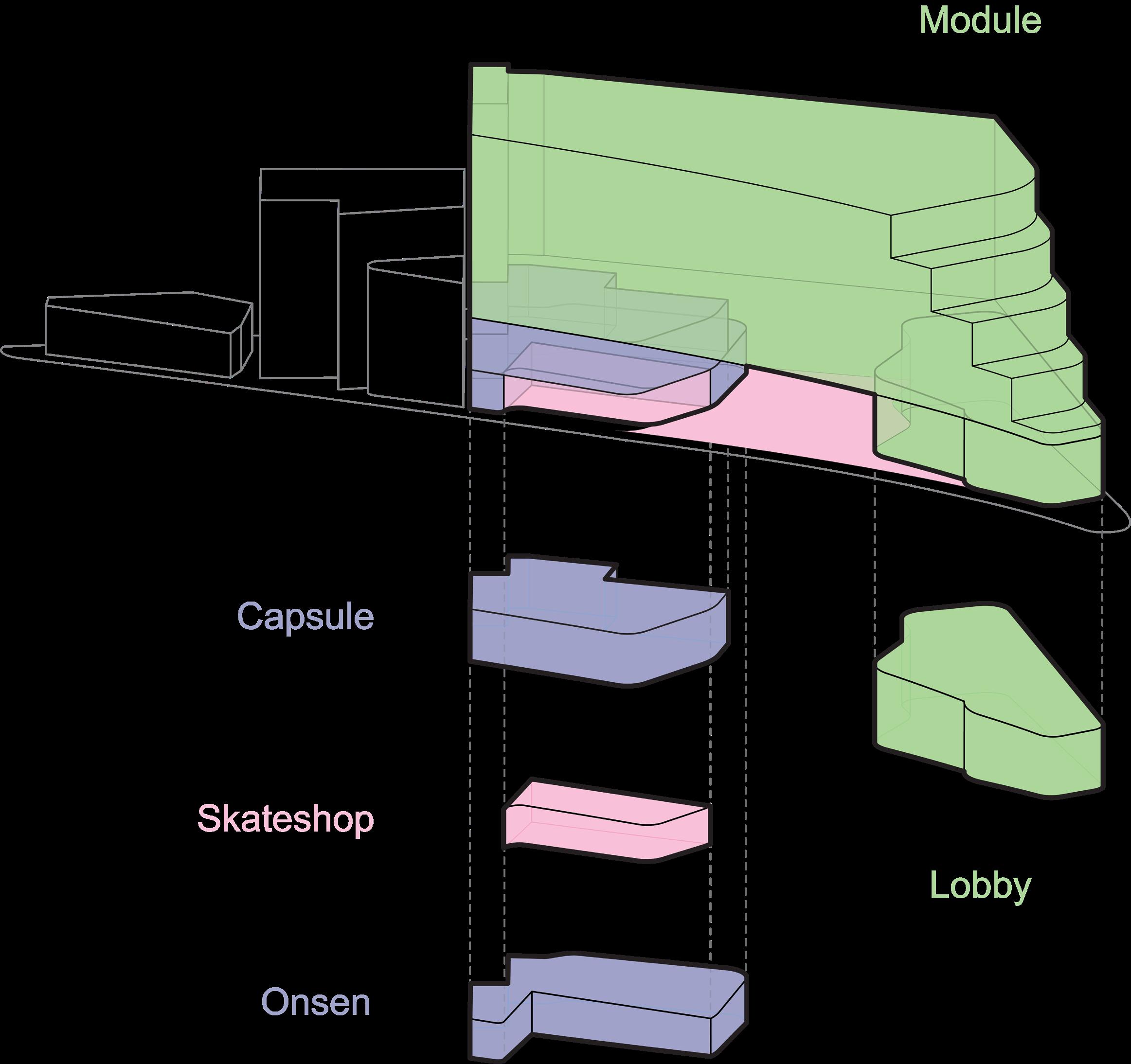 Onsen Park Mech Skateshop DN Lobby Capsules Izakaya DN DN DN Terrace Storage DN DN