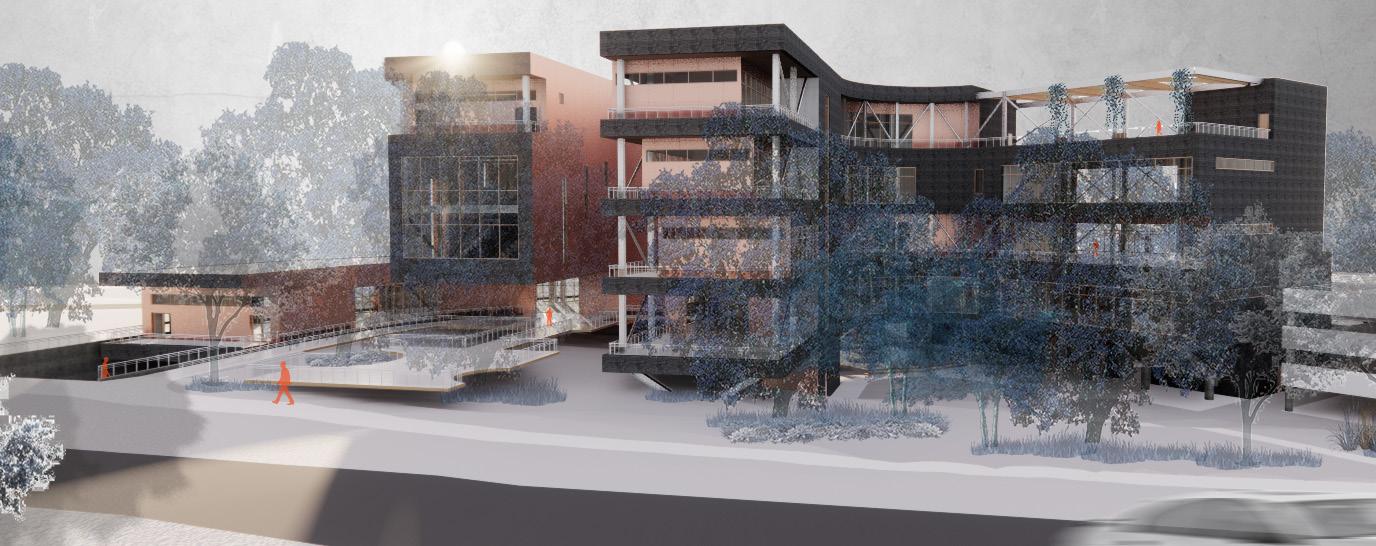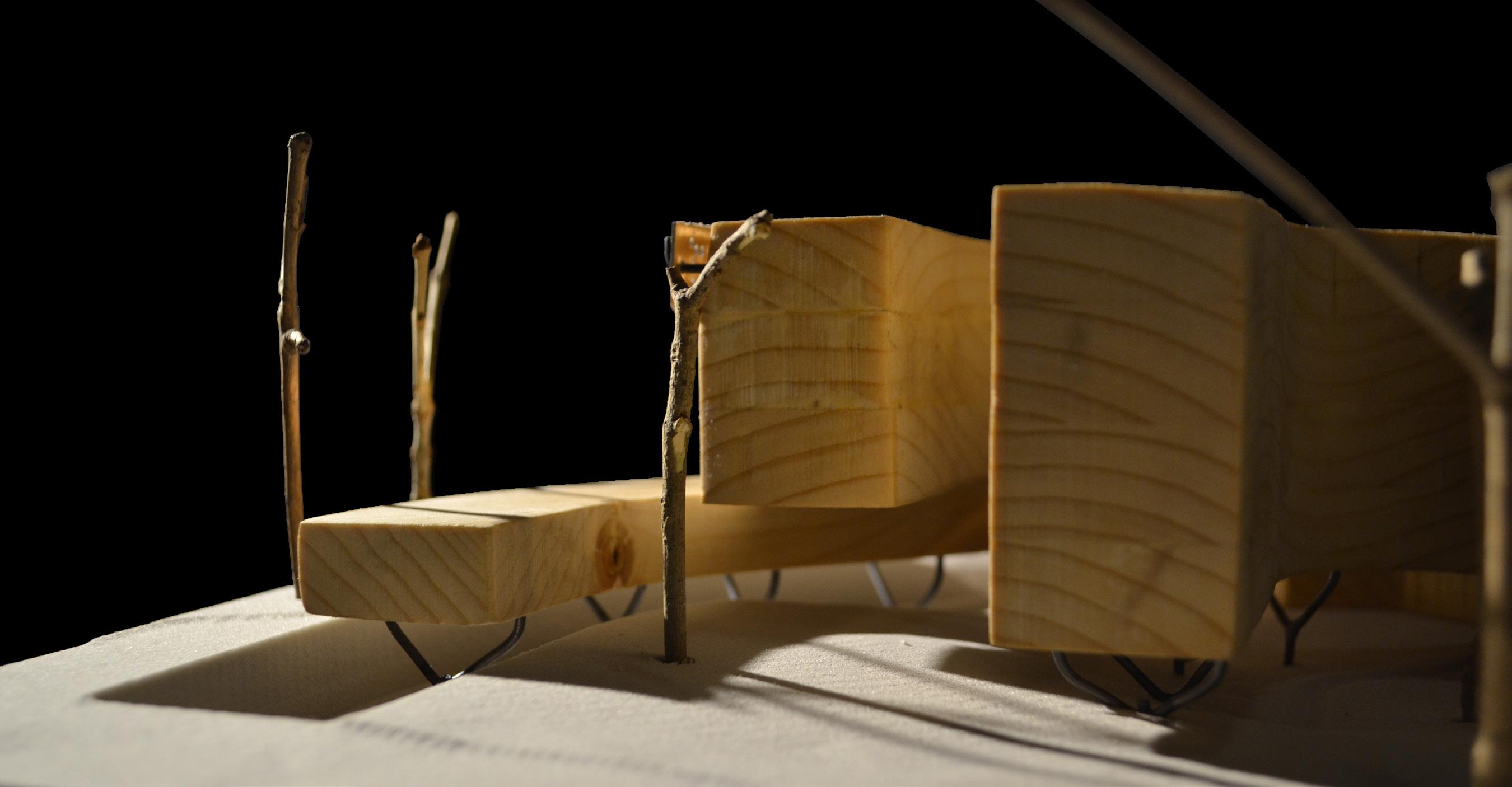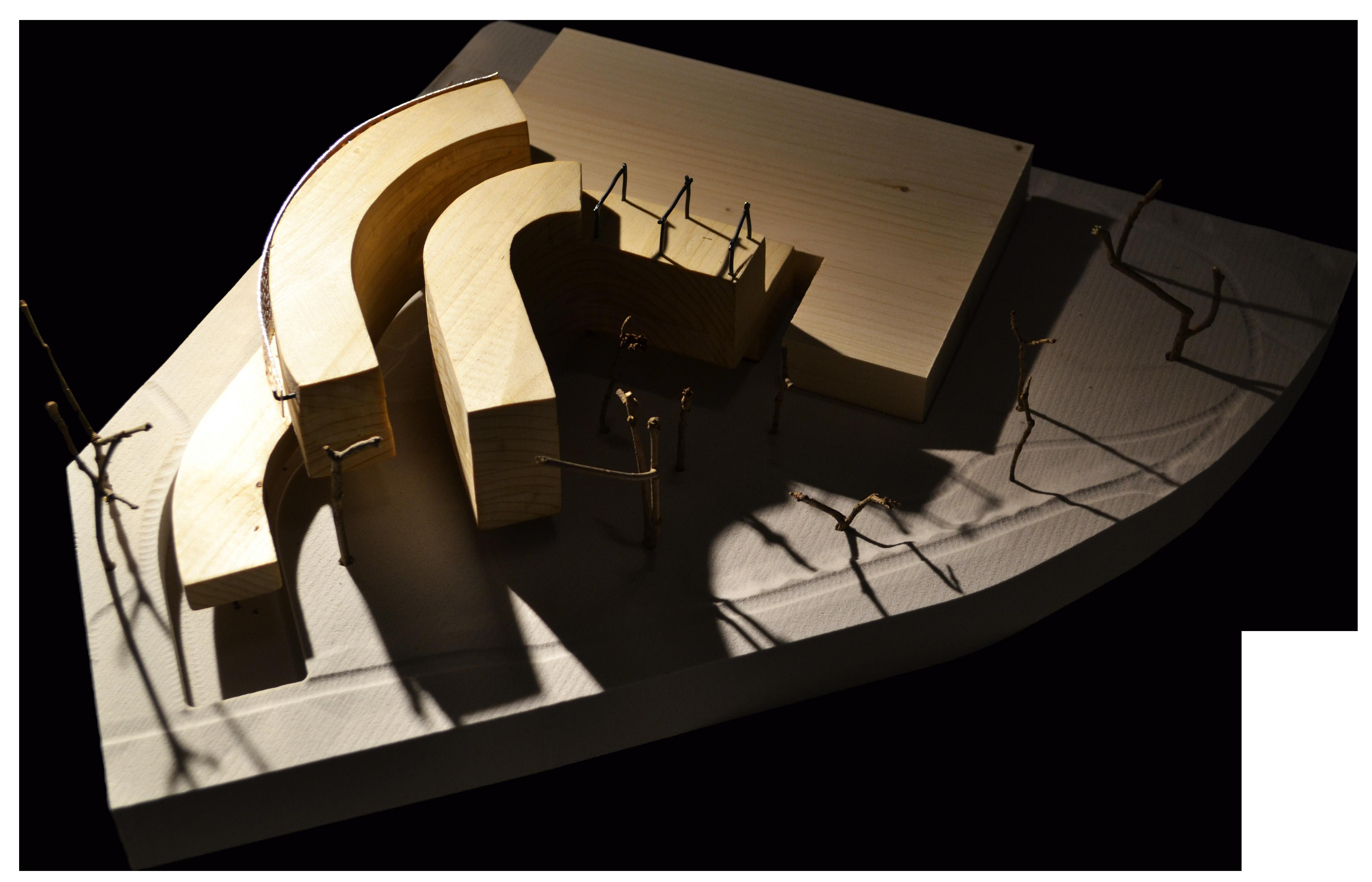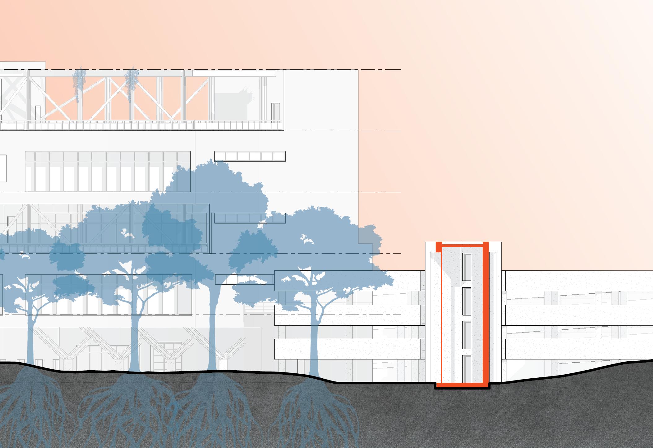 Gradients is a facility that will serve the research needs of the UNC Charlotte School of Arts and Architecture community, and that of the city more broadly. Located on campus this site that has long been given to the person automobile. Maximum conservation of trees and a minimal impact to the natural processes of the site respects the agrarian legacy of the site pre-university and pre-commuter. The building will maintain as its core objective to ensure the minimum carbon footprint. It shall be constructed of reused and recycled materials, which will eventually be disassembled and re-used. Respecting the natural context and the human experience of the site.