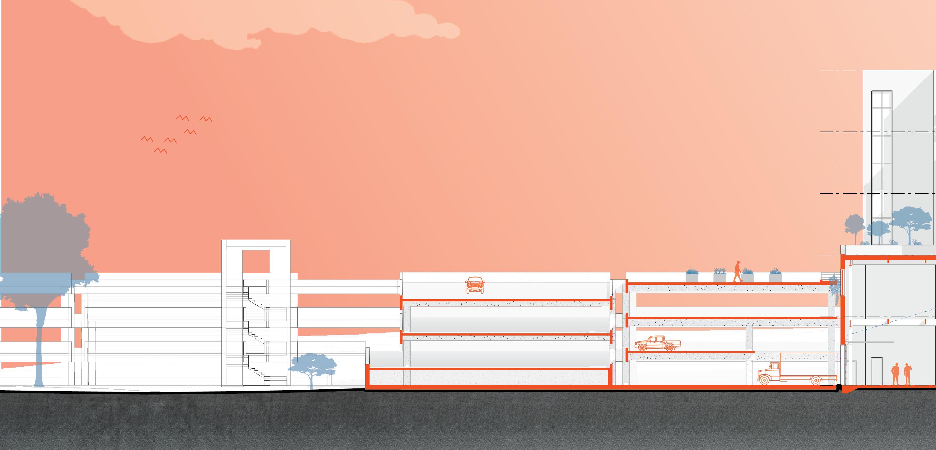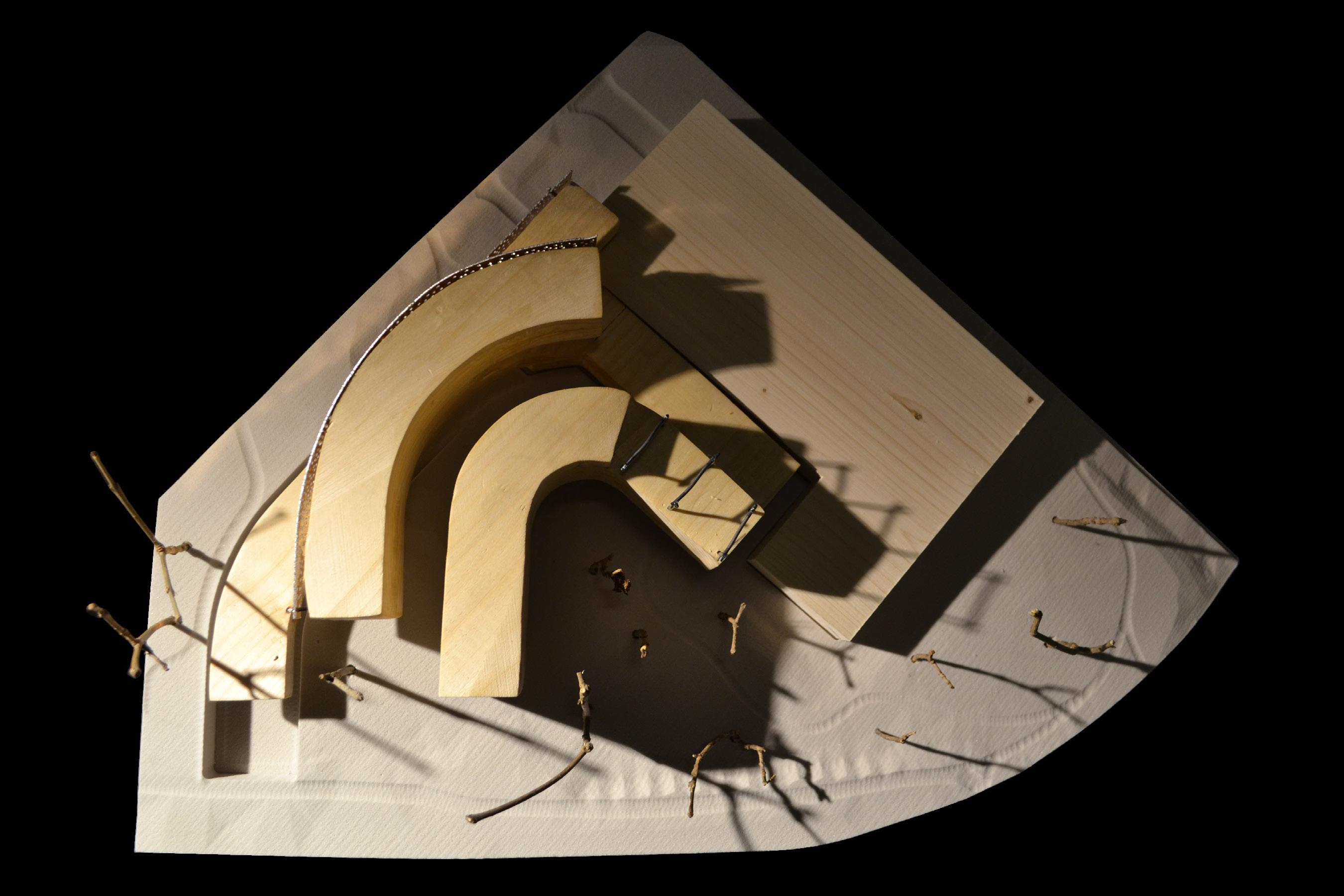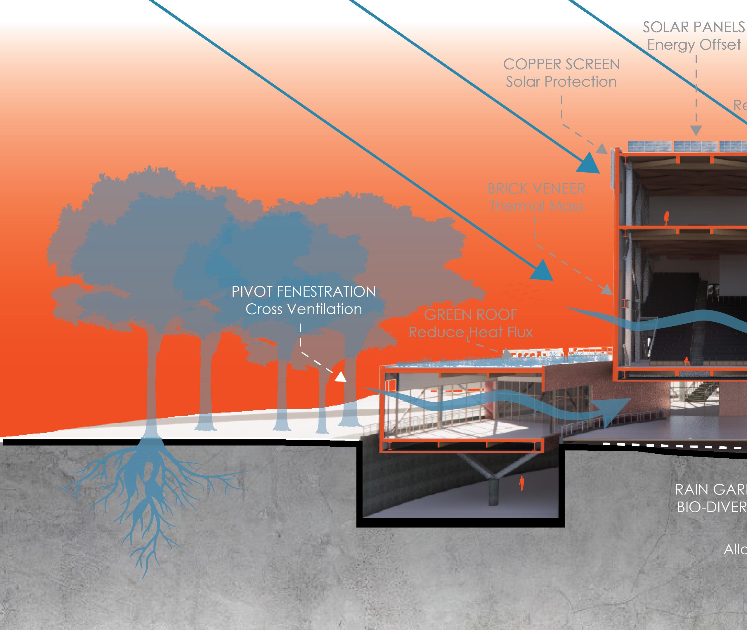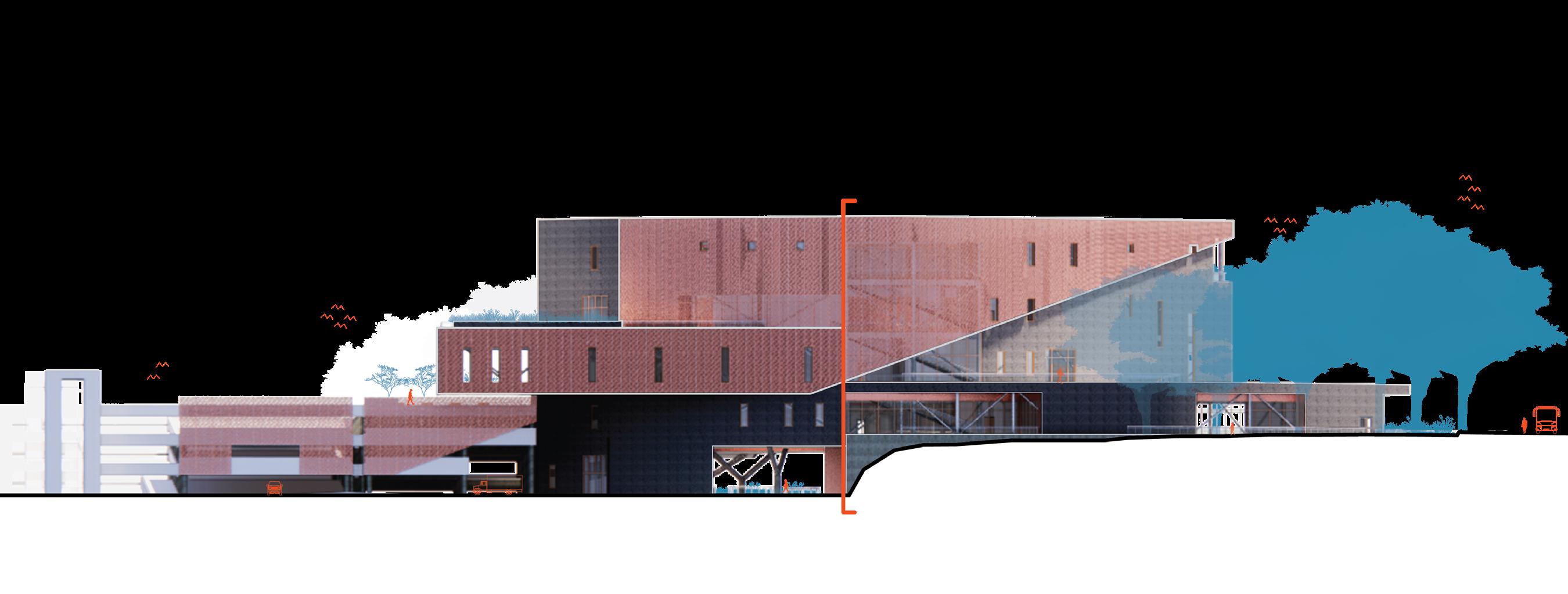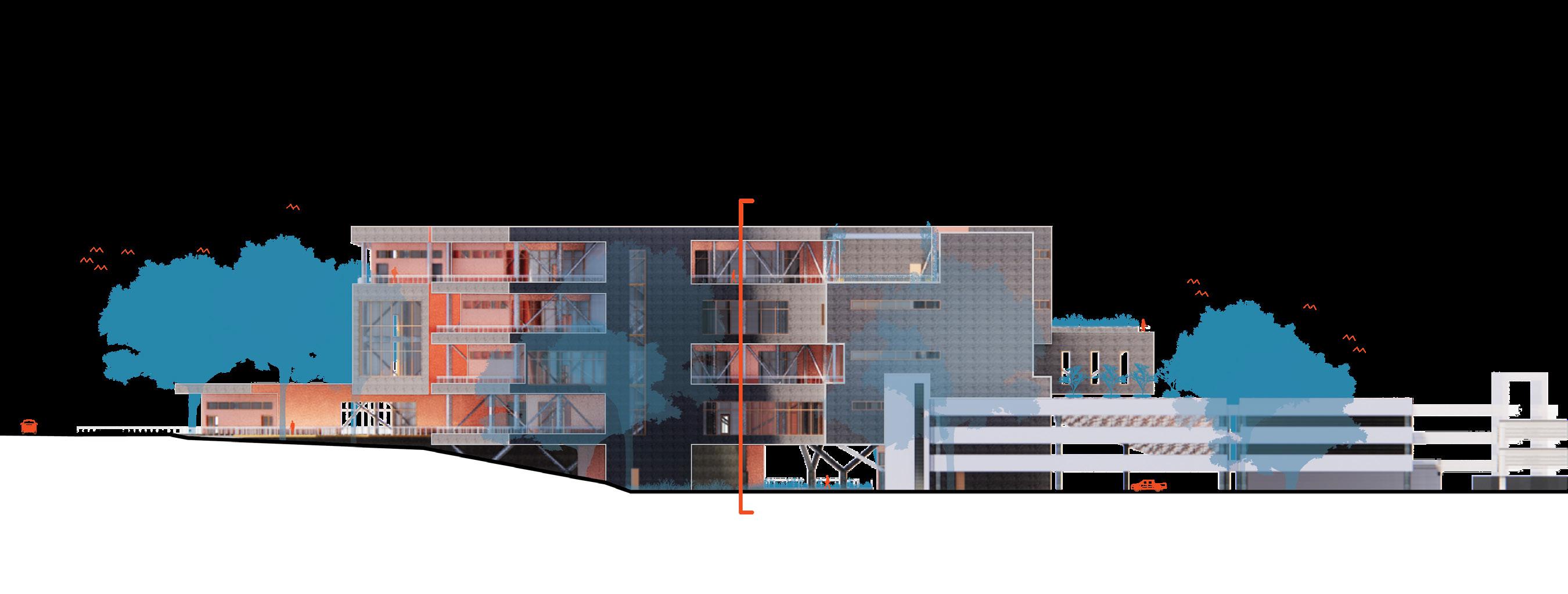 Gradients is a facility that will serve the research needs of the UNC Charlotte School of Arts and Architecture community, and that of the city more broadly. Located on campus this site that has long been given to the person automobile. Maximum conservation of trees and a minimal impact to the natural processes of the site respects the agrarian legacy of the site pre-university and pre-commuter. The building will maintain as its core objective to ensure the minimum carbon footprint. It shall be constructed of reused and recycled materials, which will eventually be disassembled and re-used. Respecting the natural context and the human experience of the site.