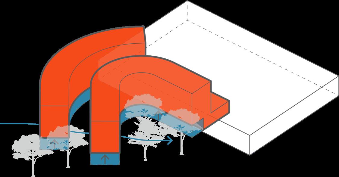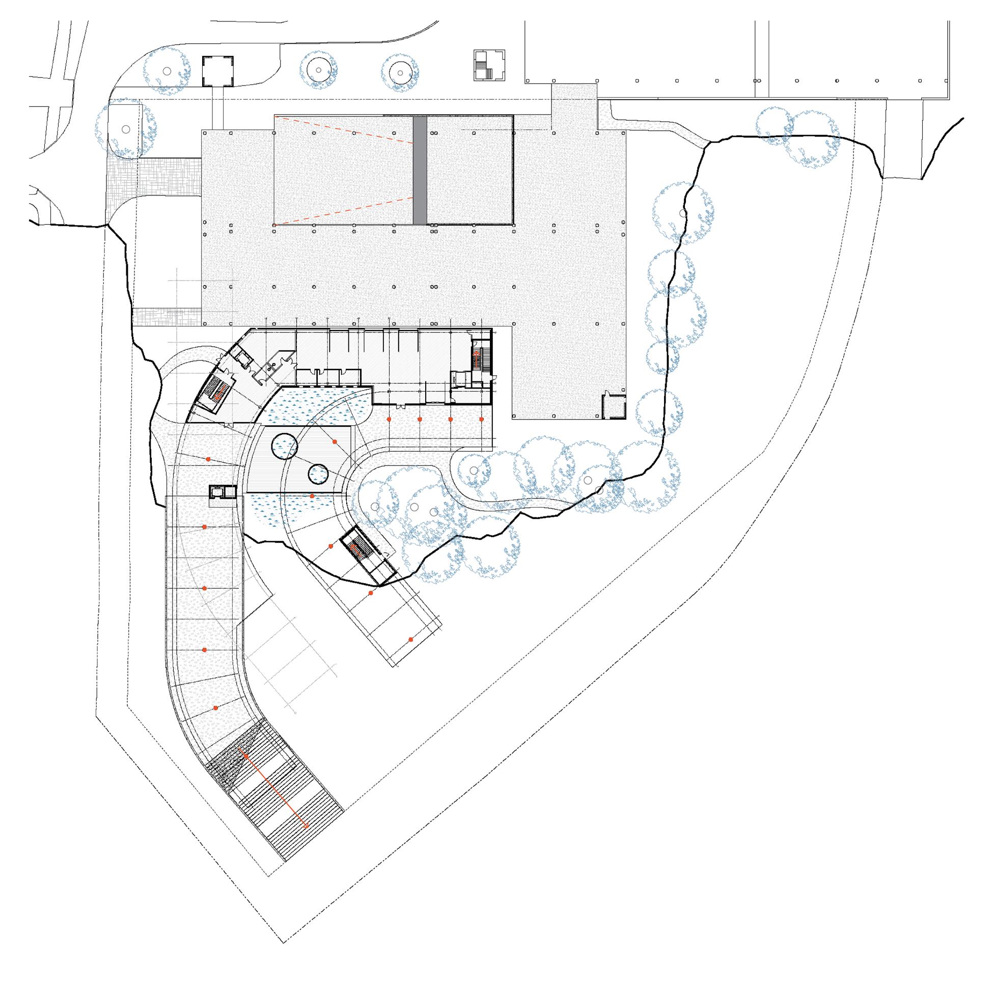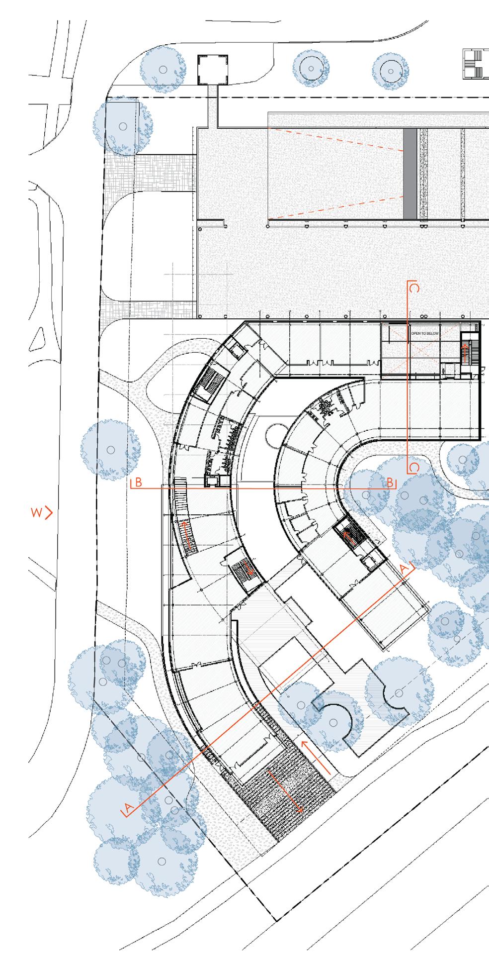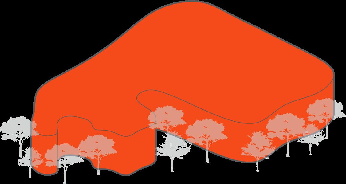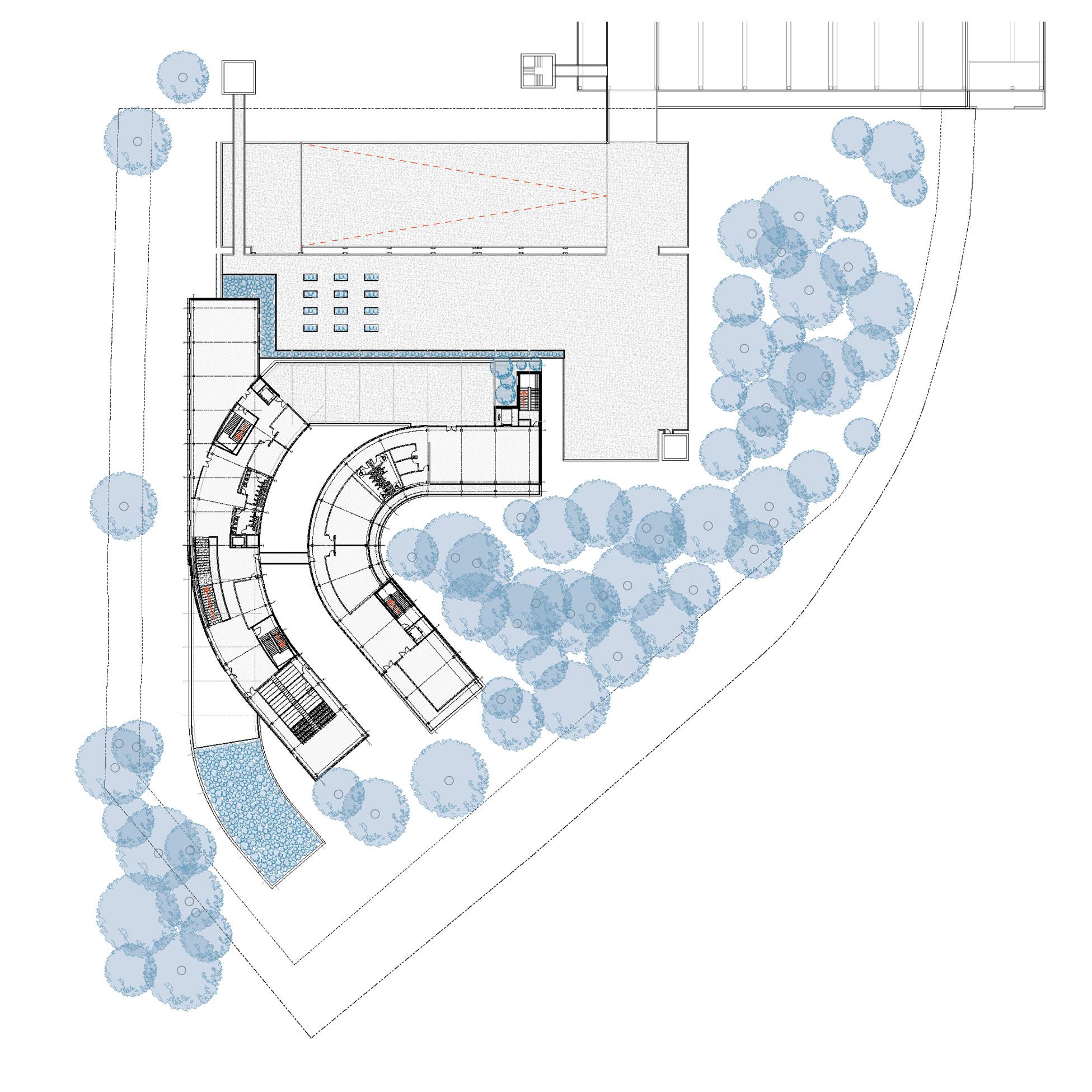 Curve to wrap the wooded area and integrate with the existing parking deck.