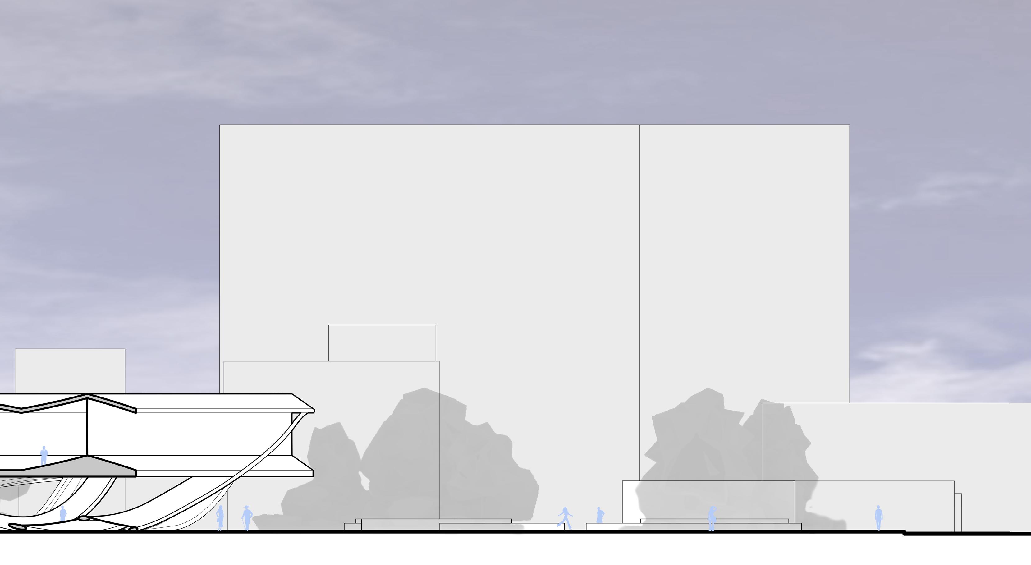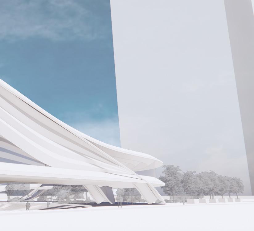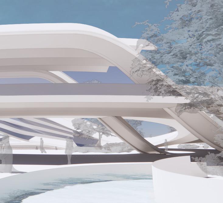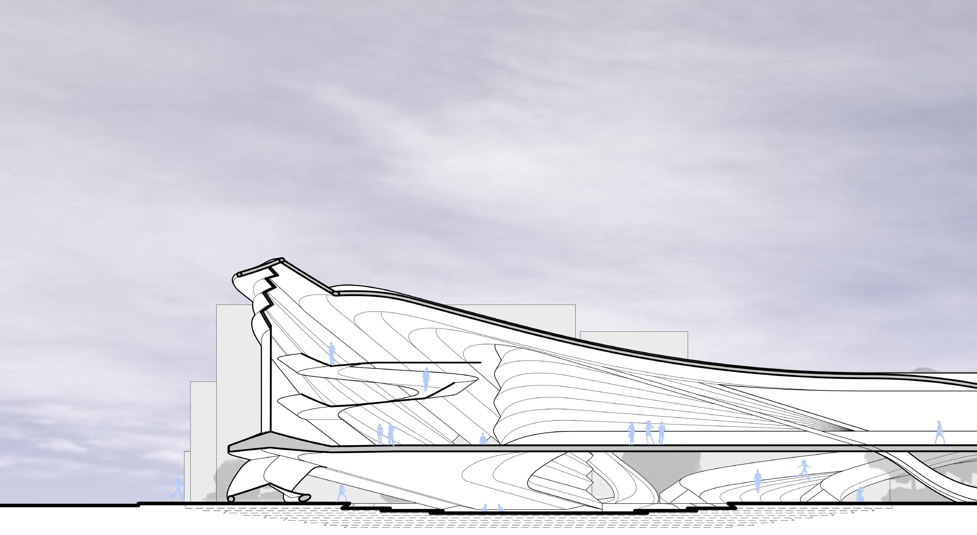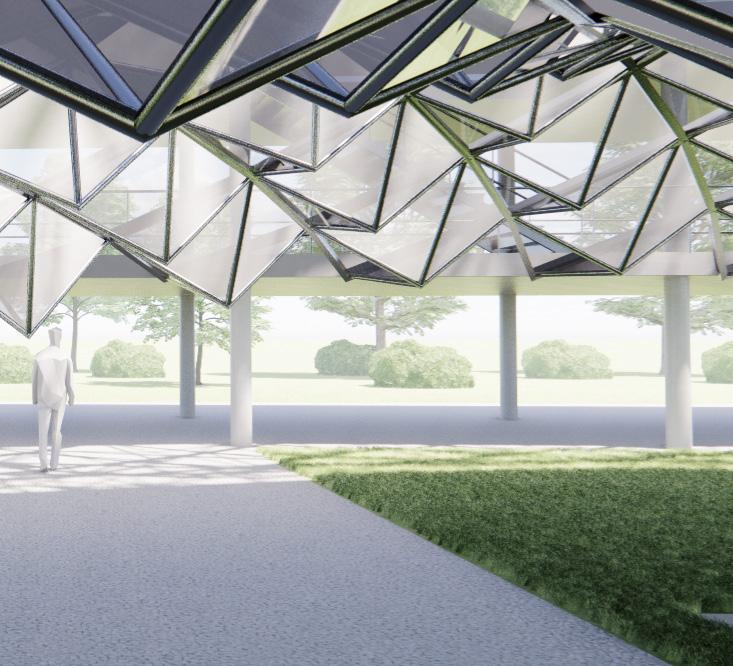 Located in between Bella Adzug Park and the northern most part of the Highline. Between the Folds integrates with its context to create an exposition space inspired by and dedicated to the folding arts. This raised exposition space extends the adjacent park while creating circulation paths through and inside of the site.