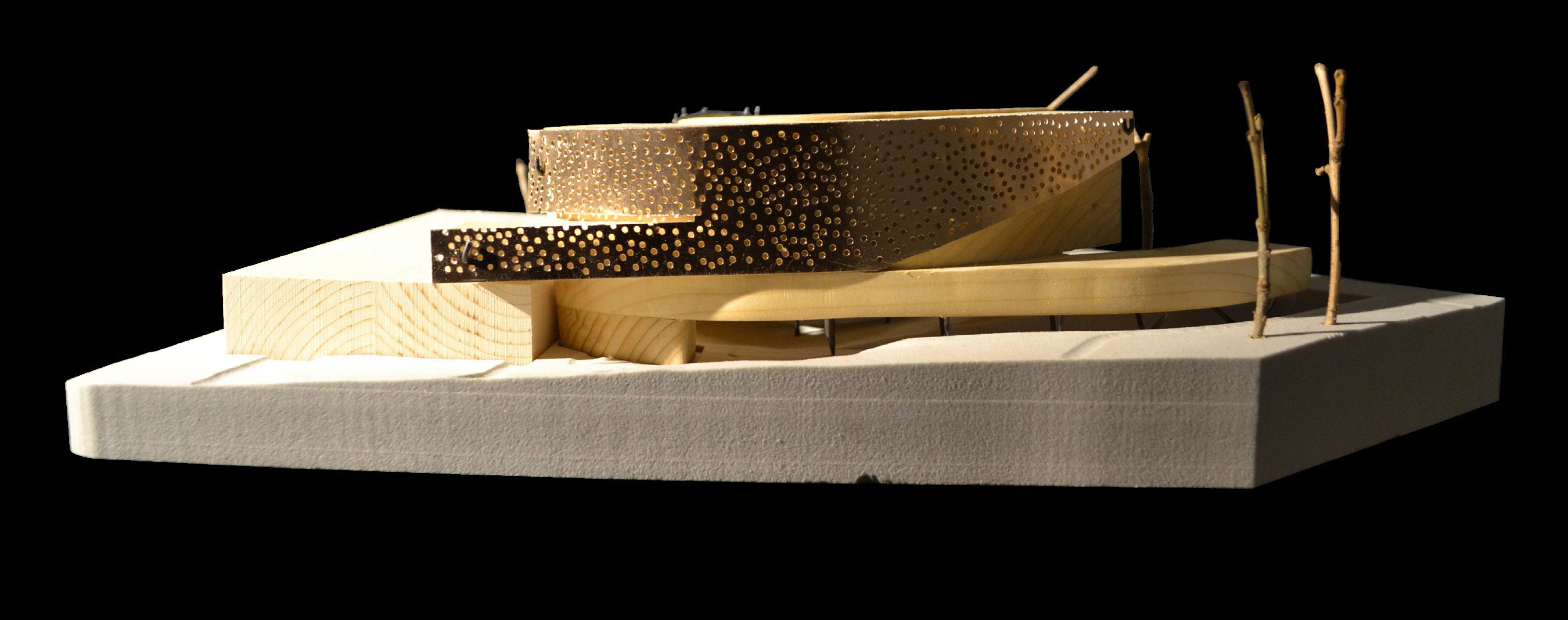 That materials used in Gradients have been repurposed from waste from demolished buildings. We have envisioned possible lifetimes for each of the main materials used in our project; manufactured timber, structural steel, copper panels, and brick. Repurposing materials removes the need to extract new resources, reduces construction waste, and the amount manufacturing needed. These same materials were used to make our massing model.