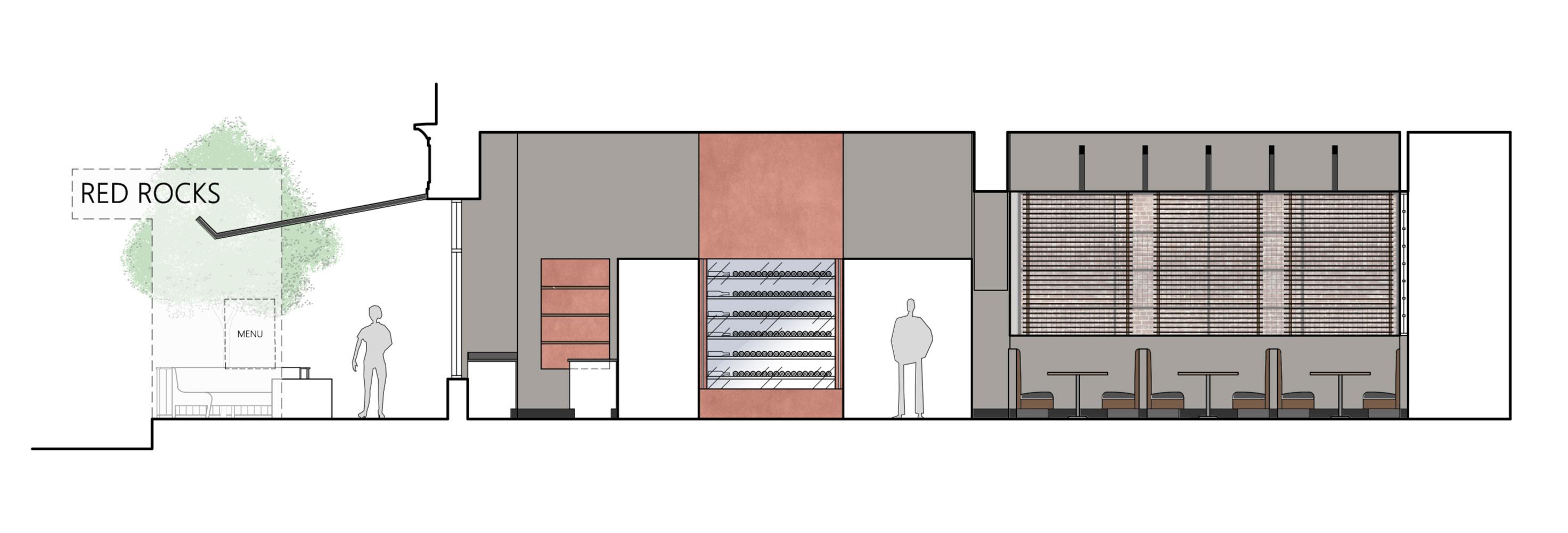 Red Rocks Birkdale is an American style restaurant that has been a long time tenant in Birkdale Village. Along with improvements being made to the mixed use community by new developers, all of the tenant have had to update their facilities. The majority of this renovation focuses on the interior space. The use of framed arches and vaults as an organizing motif is enhanced by various uses of raw materials including brick, steel, and wood.