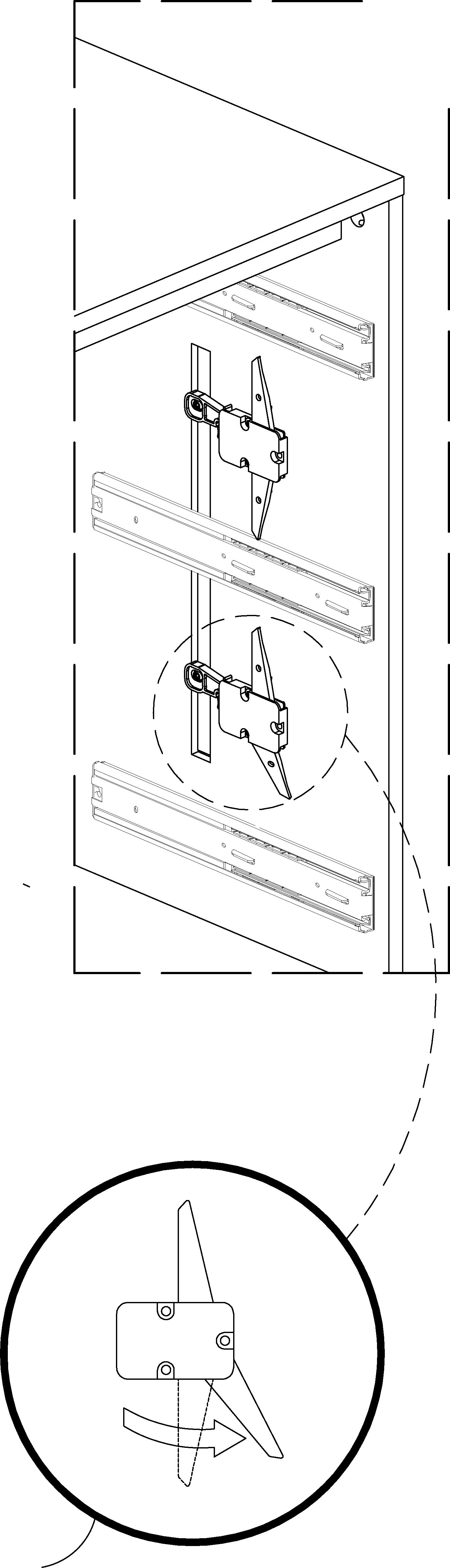 Now follow a similar process as Step 14 to properly install the middle drawer. As shown below, the top levers of the bottom safety mechanisms must be placed in the forward position to allow you to be able to install the drawer properly.