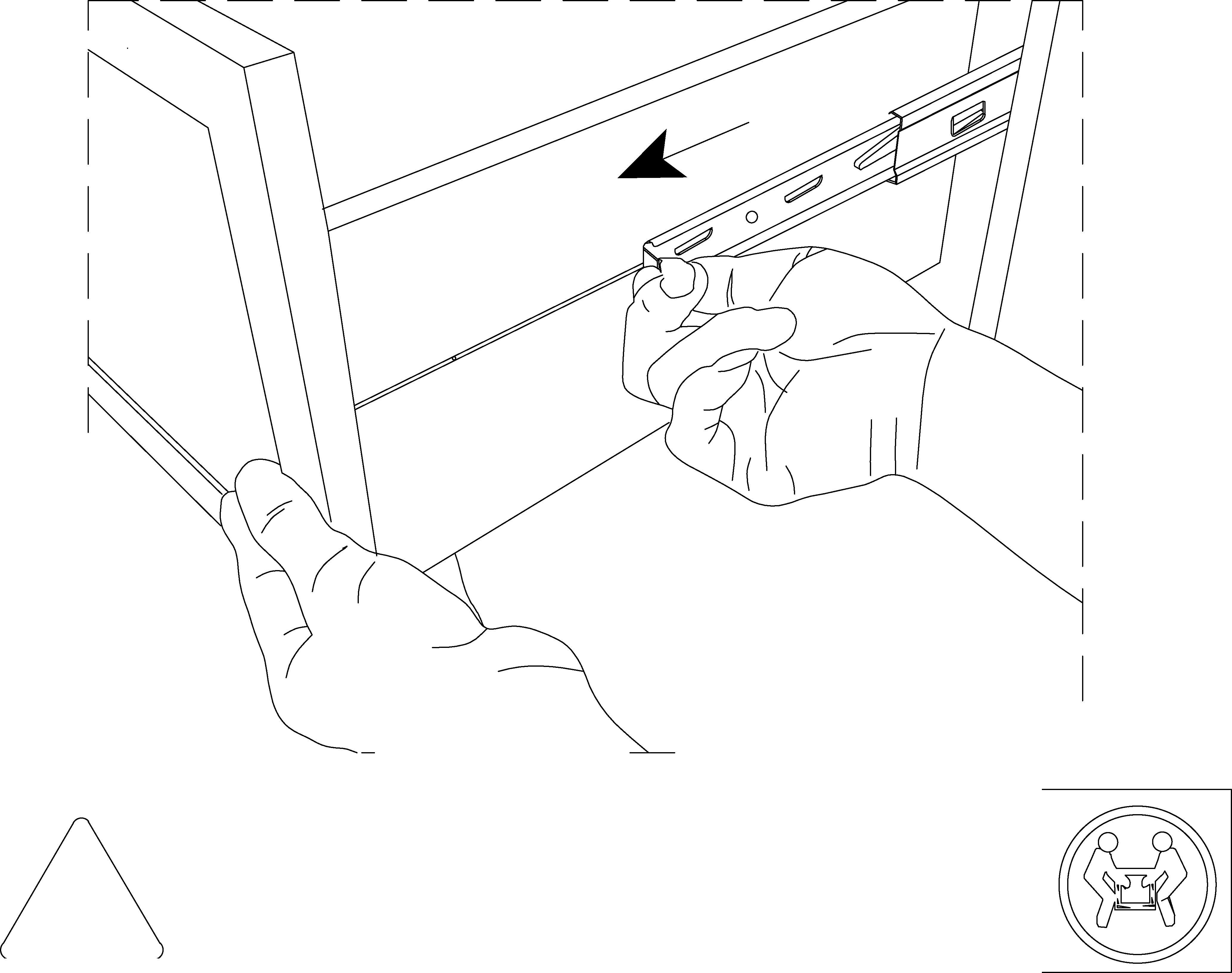 CAUTION: You’ll need two people to assemble the drawers, so grab a friend. During installation both sides must be installed at the same time.