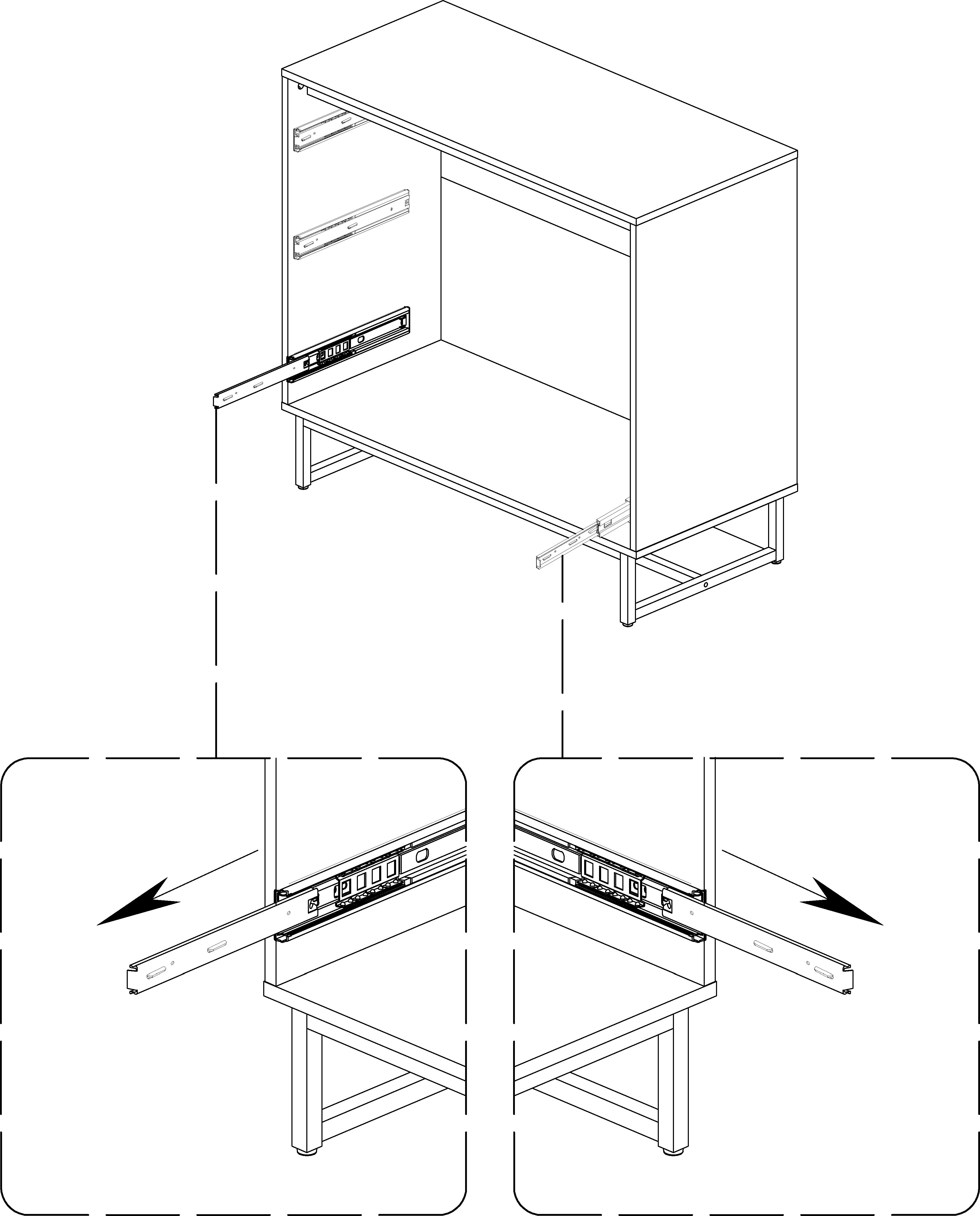 Extend the bottom drawer slides out to full extension.
