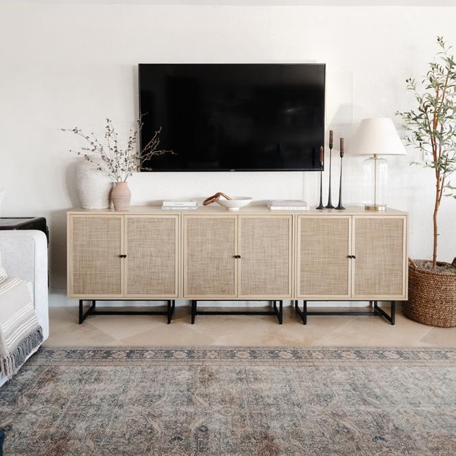 Our entire Andrew collection features door and drawer fronts with natural rattan cane details