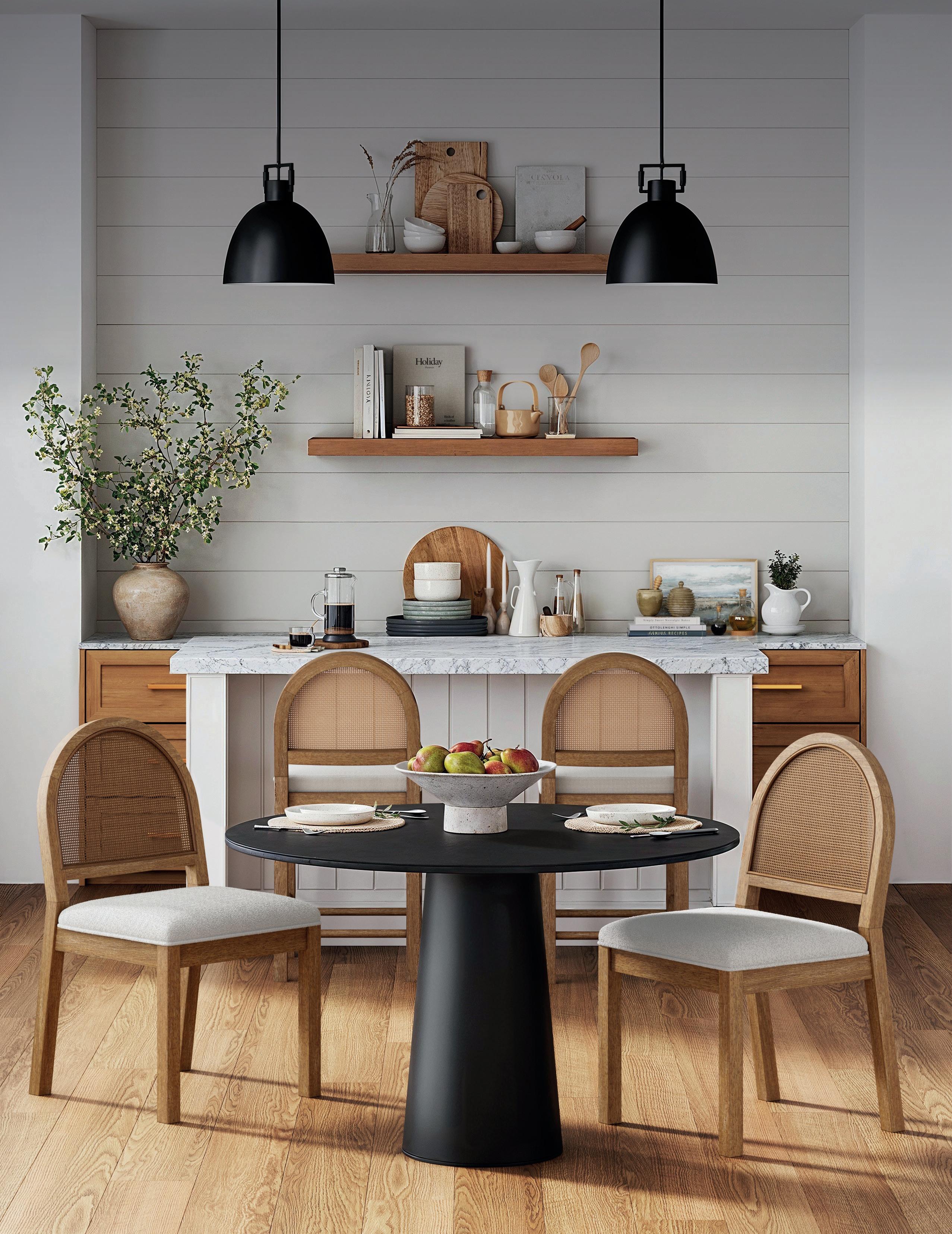 The natural rattan seat back provides style and support Bailey Dining Chair 28402 | $229.99 Bailey Bar Stool 23202 | $249.99 Leigh Pendant 12206 | $149.99