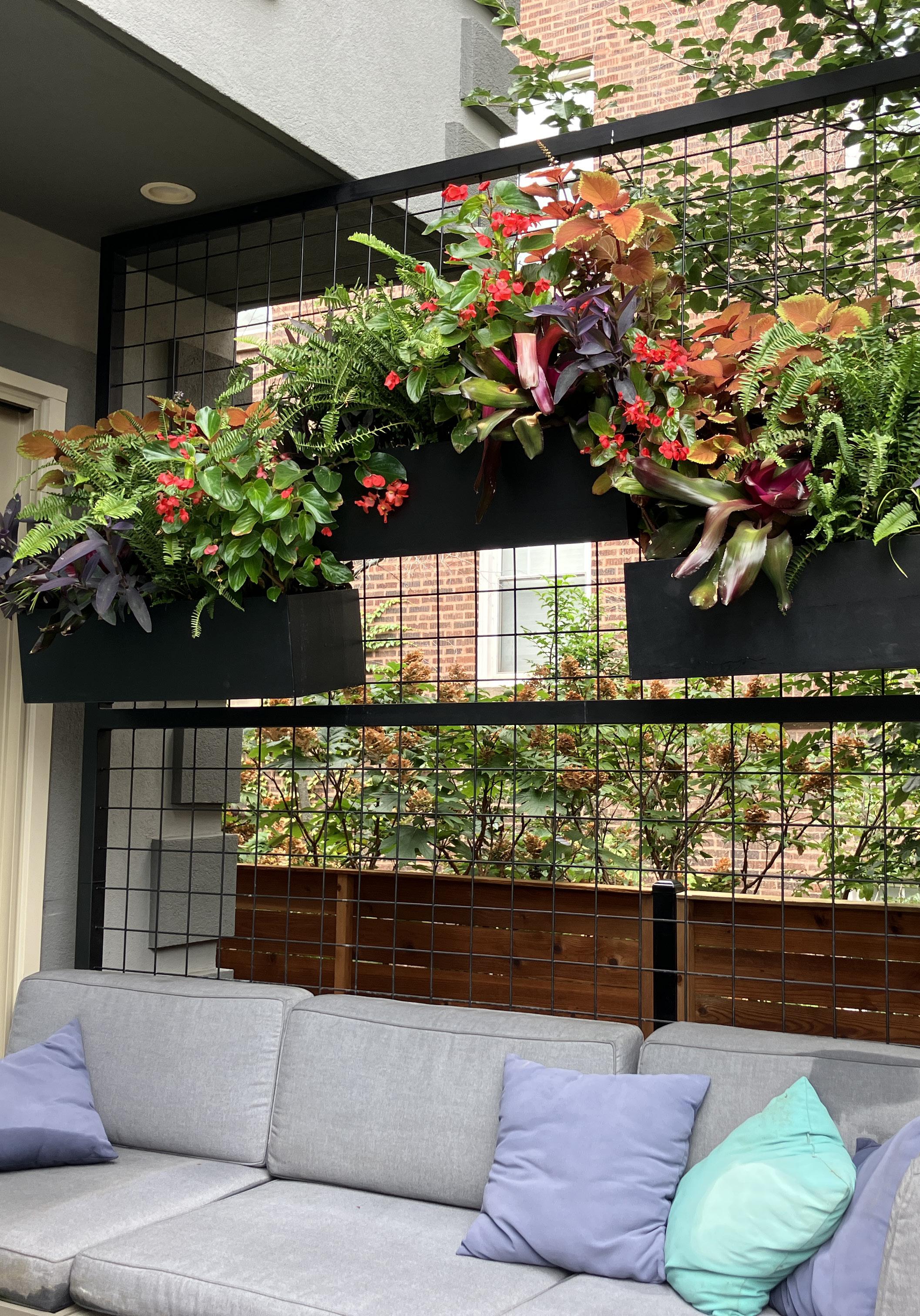 This garage rooftop design transforms a compact garage space in Chicago into a stylish urban retreat. New decking creates a clean, modern surface for lounging, offering a perfect escape in the heart of the city. A custom-fabricated metal trellis with hanging plant containers anchors the space, add greenery and texture while providing a touch of nature in an otherwise urban setting. This small-scale space maximizes the potential of the area, creating a functional yet visually striking escape above the city streets.