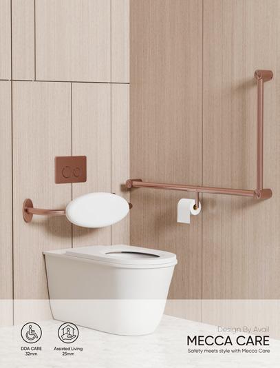 The ultimate solution for safe, stylish disability care bathroom accessories. With unbeatable strength, modern design, and easy installation, Mecca Care products o er unparalleled safety and dignity for individuals with disabilities. With a full range of options, including grab rail showers, grab rails, backrests, folding shower seats, and more, Mecca Care products are the ultimate solution for any DDA space, o ering both practicality and style. Make a lasting impact with Mecca Care, the new standard in disability care bathroom accessories.