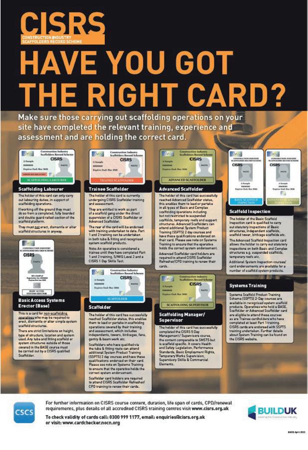 CISRS has issued an updated ‘Have You Got the Right Card?’ information poster aimed at helping site managers and contractors check that operatives, manager/supervisors and inspectors of scaffolding hold CISRS cards endorsing the correct qualifications and experience.