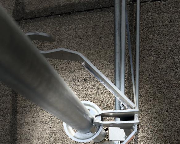 As aluminium couplers are not readily available, aluminium tube and beams are invariably connected with steel couplers and joint pins. Unfortunately, when two dissimilar metals such as aluminium and steel are in contact, a phenomenon known as ‘galvanic corrosion’ can occur where the corrosion of one of the metals, in this case aluminium, can be greatly accelerated. In severe cases this could seriously affect the integrity of the scaffold structure.