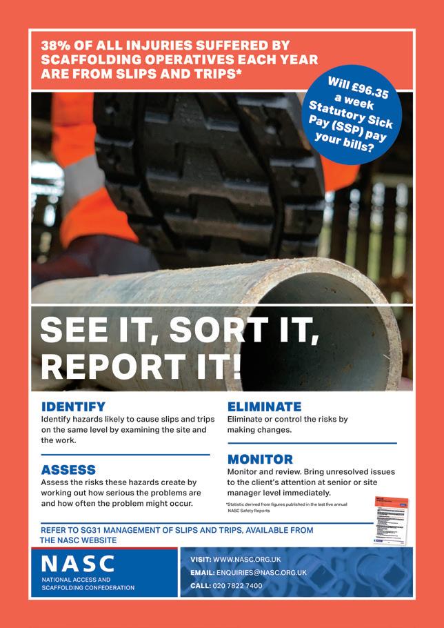 The NASC has produced two safety-focused posters aimed at increasing awareness of the two most common causes of injuries to NASC member scaffolding operatives: manual handling and slips and trips on the same level. For free copies of these posters please email enquiries@nasc.org.uk