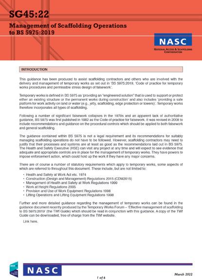 SG45:22 Management of Scaffolding Operations to BS 5975:2019