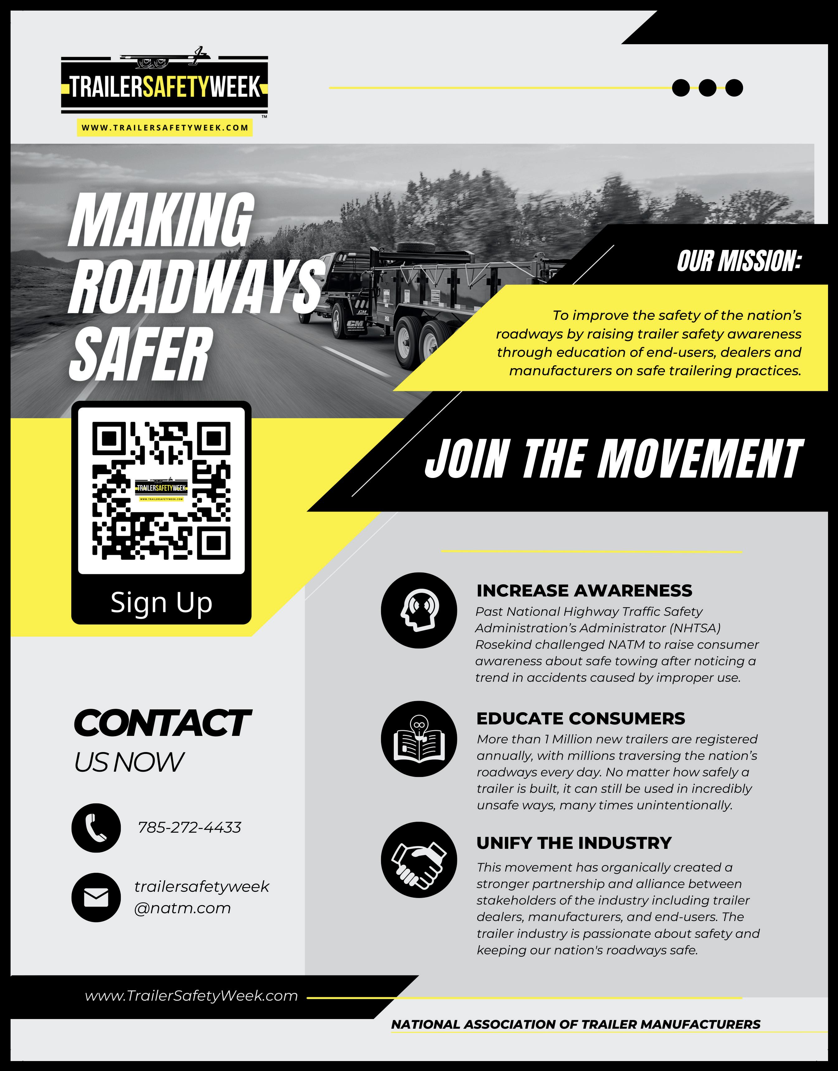 In addition to education and resources for dealer owners and their staff, the Dealer Affiliate Program will be offering additional resources for dealers to pass on to their customers. With its focus on safe trailering, NATM can serve as a bridge between dealers and their customers. NATM is stepping up its efforts to improve the safety of the nation’s roadways through increased awareness of safe trailering. And as an