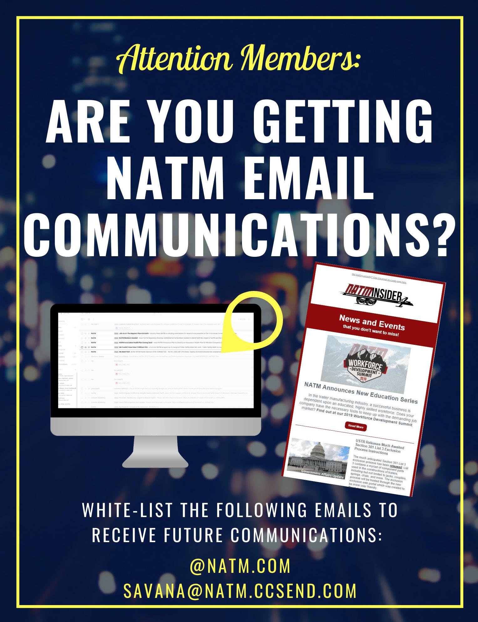 The NATM Government Affairs Program was established in 2005 through efforts by Carl Maxey, (NATM President 20052006) along with the NATM Board of Directors to adopt a proactive approach in addressing legislative and regulatory issues. Soon after, the newly created NATM Government Affairs Committee determined that the best way to be effective on legislative and regulatory issues was to adopt government affairs representation in Washington.