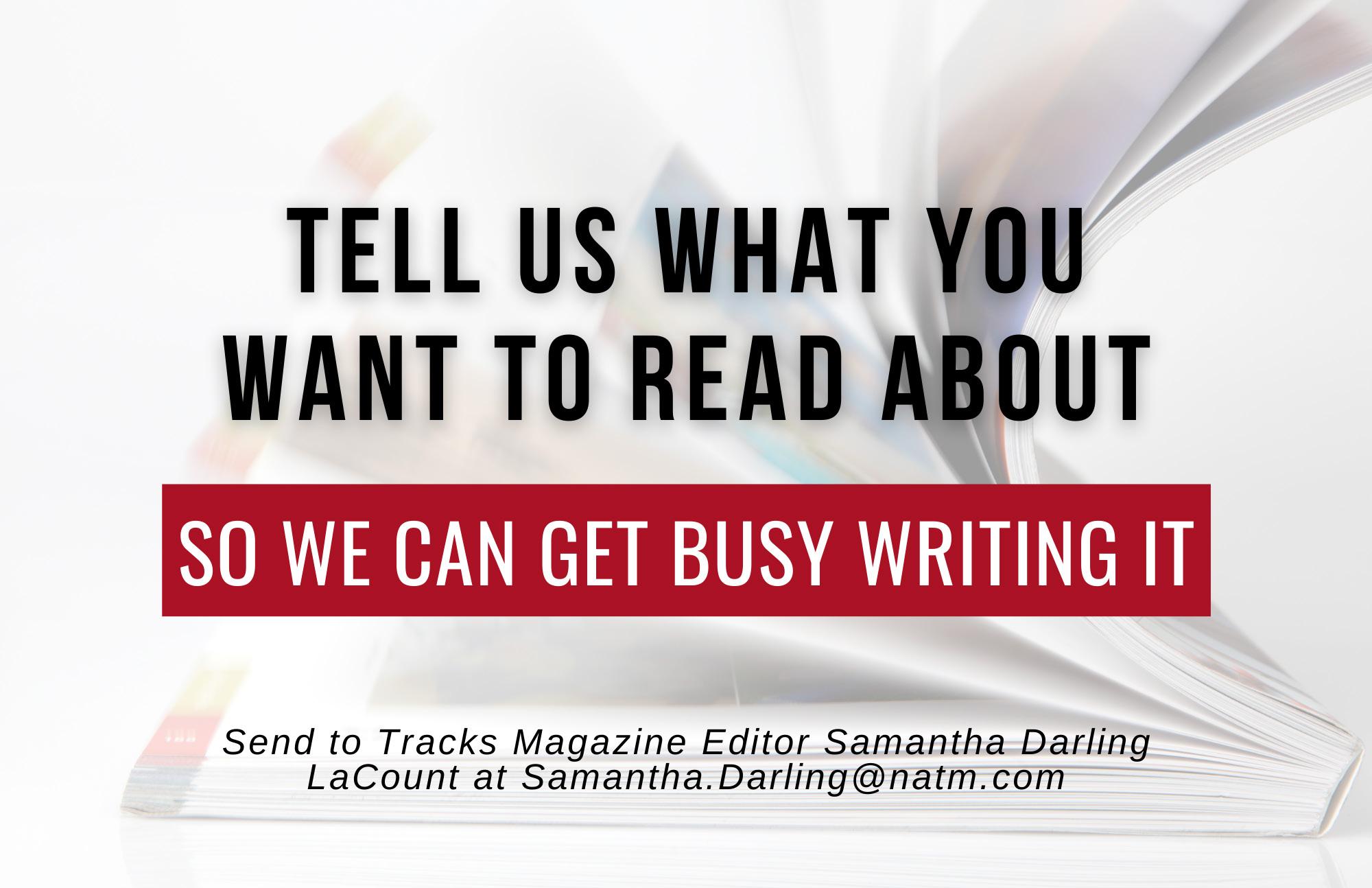 Member feedback and communication are important parts of NATM’s ability to serve member needs and to provide opportunities for members to better arm themselves with knowledge and expertise from a wide array of sources. While time is short for all of us as we balance business needs, your continued participation and engagement and absolutely critical for NATM to be a valueadd for members. Answering surveys, reading Tracks, and engaging with your representatives on the Board or Committees as well as staff will better position the Association to help you. Thank you for your continued engagement, NATM exists to support our industry and improve the safety of our nation’s roadways. There is no NATM without each of you! ■