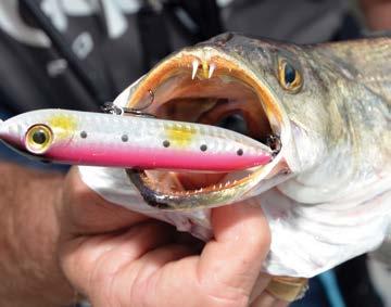 “For big trout, I like throwing topwater baits,” Ronnie Daniels of Fisher-Man Guide Services (228-323-1115, msfisherman.com) of Pass Christian said. “Anglers can catch big trout on other lures, but topwaters tend to draw strikes from larger fish. Topwater baits have larger profiles, so smaller fish won’t hit them as much. Throwing topwater baits is not only a very e ective way to fish for big trout, but in my opinion, the most enjoyable way!”