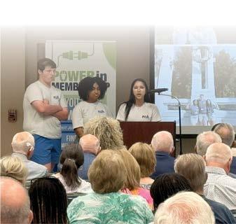 One of the cornerstones of our investment in youth is our Cooperative Youth Leaders program. It begins at Southern Pine with Cooperative University. This interactive leadership experience brings together students from throughout our service territory. Each high school can nominate two students to participate. The students spend a day at our headquarters o ce learning about electric cooperatives and Southern Pine and participating in hands-on leadership activities. Thirty-eight students participated in our most recent event, and we selected our youth leaders through observation and interviews.