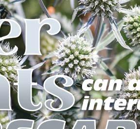 Sea Holly produces thistle-like flowers of blue, purple and silver which sit atop tall, branching stems. These flowers have a spiky, spherical form that adds an unusual and eye-catching element to gardens.