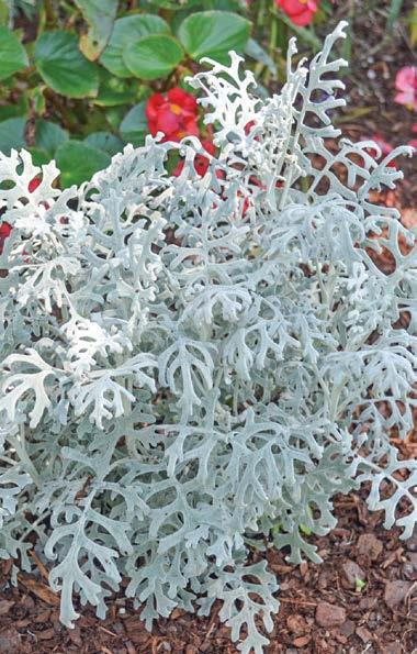 Dusty Miller pairs beautifully with a wide range of plants, o ering a striking contrast to brightly colored flowers and green foliage. Its silver-gray leaves create a stunning backdrop for blooms like marigolds, petunias, and geraniums. It also works well in monochromatic gardens, adding texture and interest alongside other silver and white plants.
