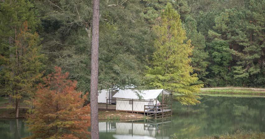 Whitt’s nature retreat provides a full hotel-like set up in each room — beds with lavender infused memory foam mattresses, air conditioning and heat, fans, co ee pots and co ee, private fire pits, and electricity. But, she said, a visit is still camping.