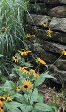Intermingled with these grasses are sunny Black-eyed Susans, their golden-yellow petals radiating like little suns around deep brown centers. These cheerful flowers brighten the path and draw in butterflies and bees during the warm months.