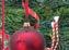 Around the waterfall, lush tropical-style plantings thrive in the misty humidity it creates.