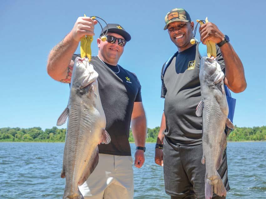 We didn’t catch any 100-pounders on this day, but some special people did land some special fish. Magness carried two Army soldiers on their first catfishing trip. Sta Sgt. Austin Leavitt from