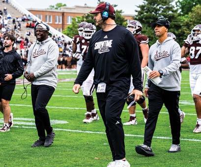 After the Georgia loss last season, Ki n realized his team needed to be bigger and stronger, stating, “We’ve got to recruit at a higher level.” His focus was a more physical front seven on defense as well as on the o ensive line. Ole Miss brought in four o ensive linemen to help returning quarterback Jaxson Dart and wide receiver Tre Harris. Ki n also brought in three running backs and a couple of receivers by way of the portal. To help defensive coordinator Pete Golding, the portal brought in the likes of tackle Walter Nolen and end Princely Umanmielen along with linebacker and defensive back help.