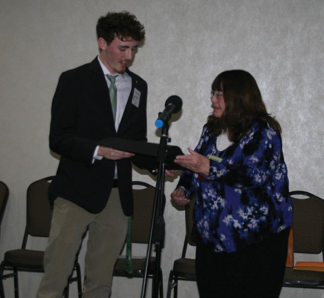 Joseph Gall received a $1,500 scholarship award from the Great Lakes Ice Cream & Fast Food Associaton. Mary Sowers presented the award.