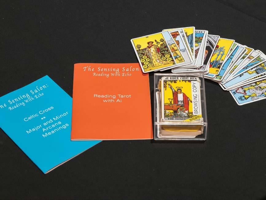 Abetween and Through, an investigative video about Amazon’s informal data analytics and offsite warehouses that revealed bots, animals and spirits in the hidden design features of these platforms. We also encountered Extended Asia’s conversations organised into playlists, Ong Kian Peng facing the saline waters of the Dead Sea area in Jordan, Annlee of No Ghost Just a Shell (once a manga character, now the retired heroine of several works initiated in 1999 by Pierre Huyghe and Philippe Parreno) who appeared in Rirkrit Tiravanija’s 2002 (Ghost Reader C.H.), a nine-hour reading of the novel Do Androids Dream of Electric Sheep, 4 and Valentina Desideri and Denise Ferreira da Silva’s space set for The Sensing Salon: Reading with Echo, hosting tarot reading sessions that, on the very last days of Natasha, mystically foretold and found relevance between the pains, plans, bots, spirits and drives that mixed a curator’s work with that of an art institution. The duo brought visitors and some of the curators to sit around a low table. They flipped open two sets of tarot cards, one of which was their revised version based on an understanding of how the art world functioned with and around its activators. The rain drummed so heavily on the metal roof that day that I felt I would find the world flooded with water by the time we left. But it was not flooded, except that everything was reflected on TPD Level 5’s shiny blue floor, making everything appear to float on a vast sea of epoxy, whose waves were the sound follies of art installations, air coolers, elevators closing their gates and the movement of people.