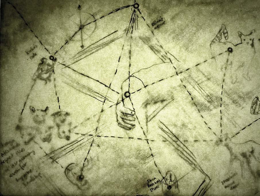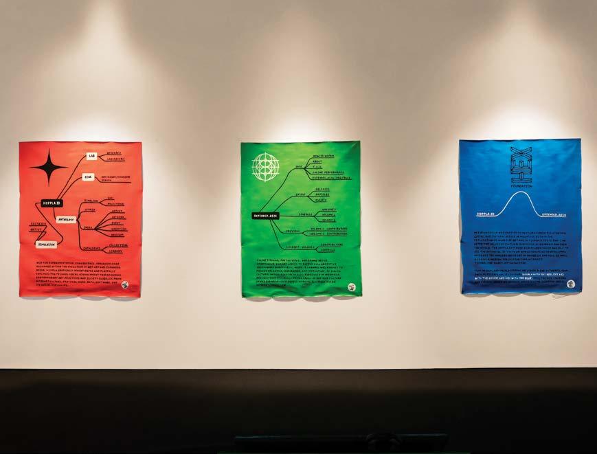 CHAINMAIL (held on 22 October 2022) studied how knowledge is formed and communicated between human and non-human intelligence. Reflecting on meme culture and lived realities, participants drew from images and text that were digitally transmitted between everyday communication channels, artificial intelligence and open-source knowledge platforms. from friendster to finsta (held on 29 and 30 October 2022) examined the parasocial dimension of current digital relationships. Together, participants and conductor-performers navigated the ever-changing cyber landscape of fiction, delusions and non-realities. The recordings and materials gathered from these workshops and online conversations were presented as a mixed-media installation within the exhibition space and contributed towards the publication.