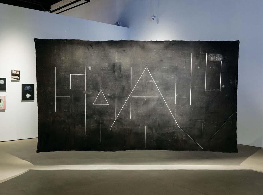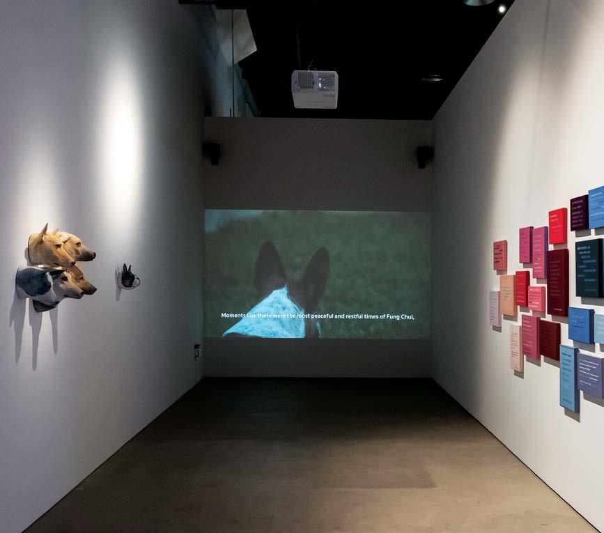 Similar to how visitors to Natasha have returned with images or impressions of some works that they have highlighted to others, the use of language, images and geographical location, sometimes expressed or reflected through language choices, was and is inherently vast. Natasha, or any realised proposal, existed, grew and moved in the mind and imagination; it was like an idea that this biennale edition gave a soul to, or vice versa. Among the works that were moved within the exhibition space before coming to a rest in TPD Level 5, gallery 1, was the installation of Raed Ibrahim, Scripted Tablets (2022). The artist came for a three-month residency in Singapore close to the opening of Natasha In Scripted Tablets, the artist inscribed personal stories and associations with world history on clay tablets. Referencing the world’s oldest documentation format, he handinscribed each tablet, sometimes as sets, with stories in which he tried to hide one person, the artist himself. Some of the stories are about migrants crossing dreadful seas in rubber boats, about workers climbing scaffolds of towers that they would not live in, others are about his family lying on the ground at a checkpoint in Beirut during the Lebanese war, and yet others are of the wars in Yemen. I stood with many people in front of the clay tablets displayed inside a groove that was incised into a six-metre long table, interested to see how they interpreted the stories. Almost none had any words. A curator friend visited the show, and upon encountering this work, he shared this quote: