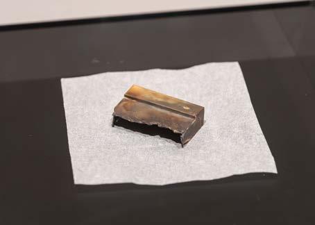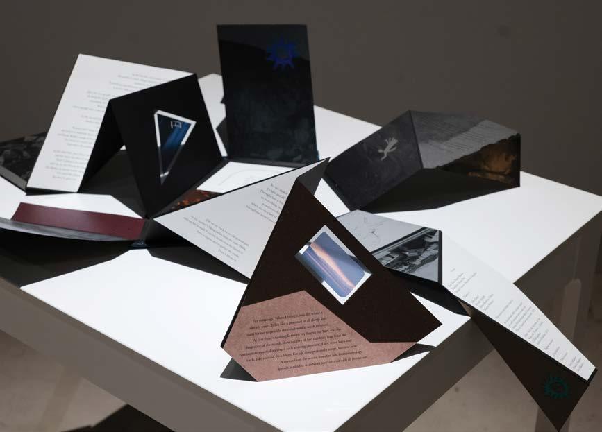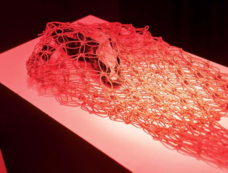 installed speakers in the corners and fitted it with red lights that projected on four pedestals placed in the centre of the room. Each pedestal had a sensor that activated a voice recording from one of the speakers if the art object on the pedestal was moved. However, the artist only installed three things on the pedestals, leaving one empty. Unless someone covered the sensor on the empty pedestal, a voice automatically played in the space all the time. The artist wanted visitors to think they could, in this safe-fromany-watching-eyes room, use their intuition and not assume the laws of museums of not touching the objects when navigating the work. As visitors lifted, moved, looked into or even “looted”/carried home part of the work, the absence would trigger an audio recording. It was a partial account of the journey of the work’s elements and how they were brought together. The objects were surreal conglomerations of basic and everyday things, tied with ropes or collaged with materials that held them together—a piece of shell, plastic, a bag and several used contact lenses. Ho told me she had kept all these lenses, not knowing what she would do with them until she started making these objects, or vessels, together with the network of movers or carriers or cachers that she activated across Hong Kong, Singapore, Shenzhen, Cabanatuan City, Nijmegen and Dallas. Ho’s collaborators cached the collaged vessels at specific locations in these places for others to discover and carry forward. The vessels further served as keys that enabled access to a repository of documents and correspondence that Ho has named The Last Emporium. Each vessel contained a letter, instructions and key pass, which allowed entry into The Last Emporium website to log the continuing journey of the vessel.