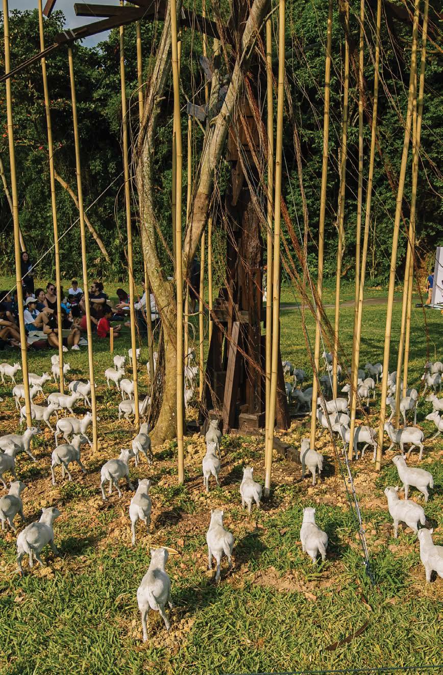 As an incubator for artistic thought and production, the Singapore Biennale continues to be the country’s pre-eminent platform for international dialogue on contemporary art. With its emphases on active discourse, discovery and collaboration, this 2022 edition was a bold shift away from traditional biennale large-scale exhibitionary formats. A range of experimental and progressive art experiences were presented across 13 diverse sites, many of which were public spaces, including the Singapore Flyer, the Southern Islands, No. 22 Orchard Road and the Singapore Art Museum (SAM)’s new venue at Tanjong Pagar Distripark. Transposing art into varied contexts, coupled with a complementary array of educational and outreach programmes, the Biennale refreshed the dynamic of encountering art and expanded its reach. More exploratory and intimate, the Biennale inspired new relationality between art, its publics and the spaces of display.