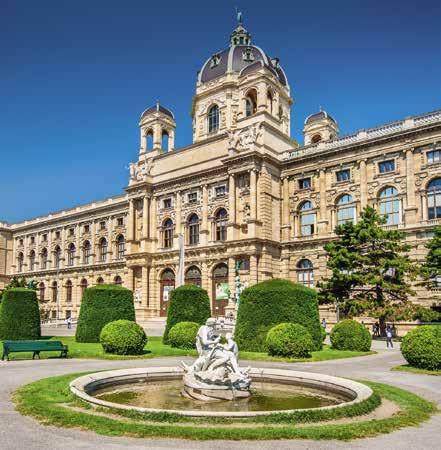 Explore imperial Vienna on foot, from the Hofburg Palace to the Spanish Riding School. Or tour the city by bicycle, pedaling to sites like the Secession Art Museum and the Vienna Concert Hall. Take a special behindthe-scenes tour of Vienna’s Museum of Natural History led by Ludovic Ferrière, a National Geographic Explorer and co-curator of the museum’s meteorite exhibit. Tour Schönbrunn Palace, the baroque summer residence of the imperial family, and enjoy free time to explore this afternoon. If you wish, return to the city for a classical concert tonight.