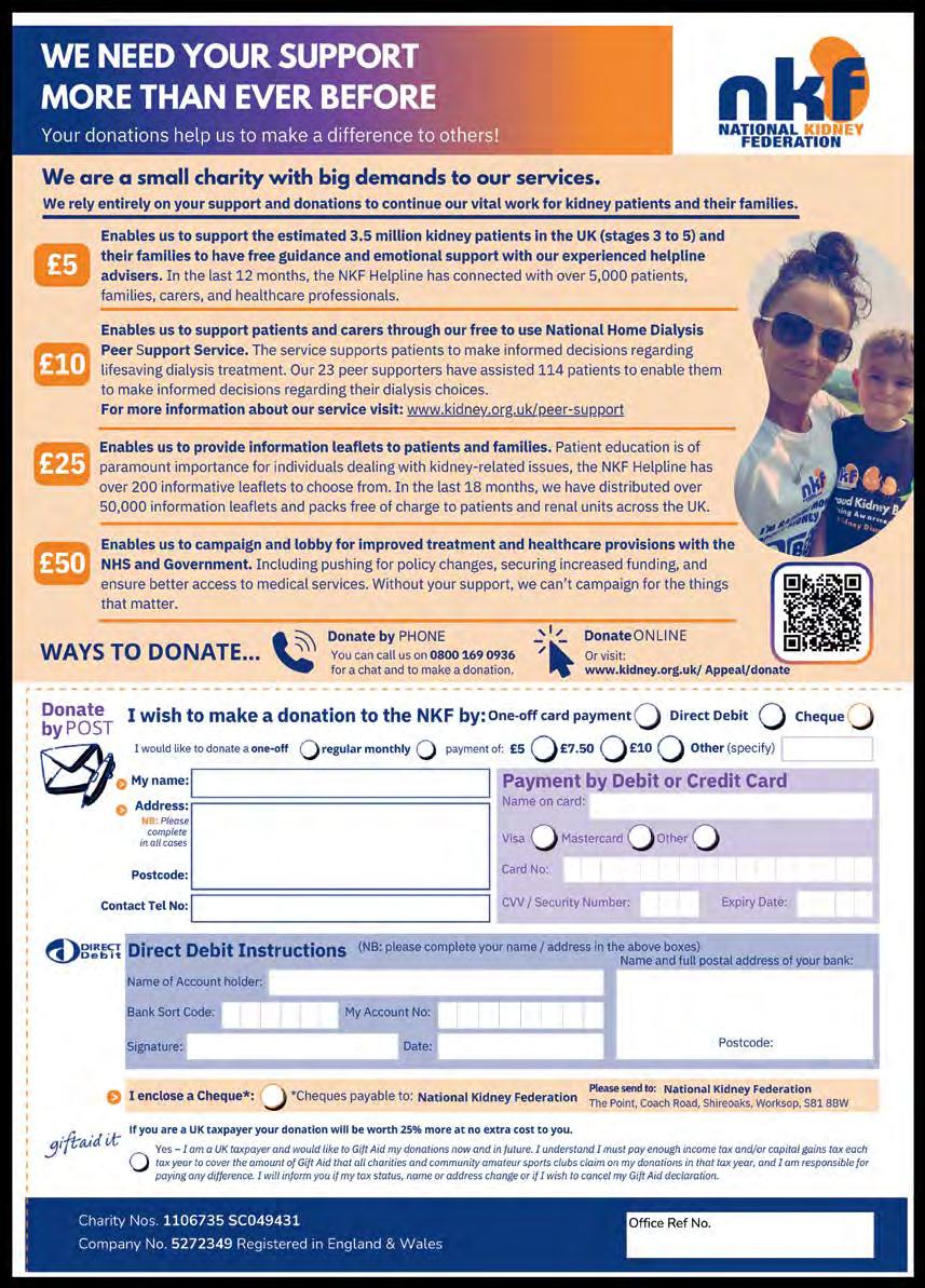 We have two more inspiring patient stories for you, both of which feature transplantation. We’ve also built on our article in the last issue about the variation in waiting times for transplantation, with an article on the work of the Organ Utilisation Group (of which Jessica is a member) which I hope you find interesting. The next issue of Kidney Life will feature transplantation from the perspective of donor relatives and live donation. Your feedback on these articles is very welcome.
