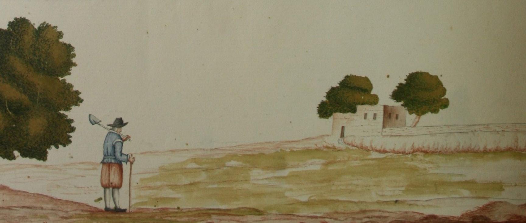 An example from Cabreo del Magistero showing drawings of field enclosures commonly found in cabrei. Unique to this cabreo are the countryside drawings at the bottom of the plates, which enrich further the 18th-century agrimensura practices. (National Library of Malta)