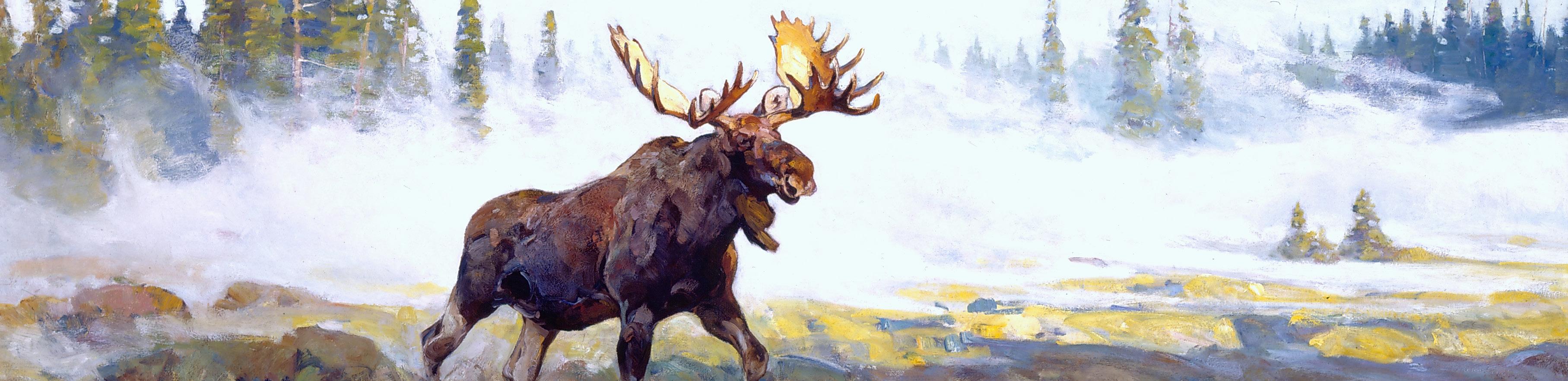 Cover: Carl Rungius (Germany, 1869 – 1959), Morning Mist (Harlow Triptych), c. 1930, oil on canvas. 47 x 79 1/2 inches. JKM Collection, National Museum of Wildlife Art