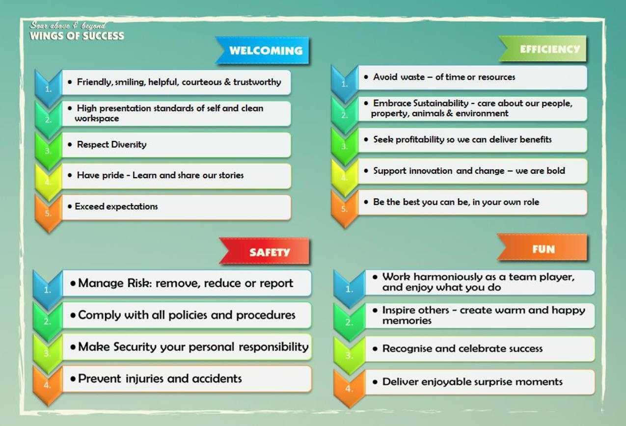 For all NTAQ Team members, the Wings of Success program helps to ensure that you work in a safe, secure, and friendly environment, combined with delivering an amazing guest experience.