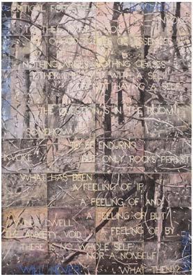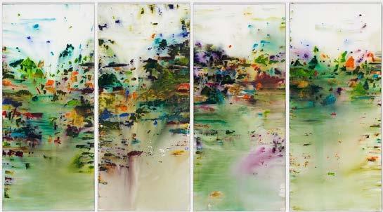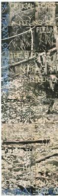 In the Critical Forests , Tillers was initially inspired by photographs of a beech forest outside Koln by the German artist Gerhard Richter. In addition, the title of the series came from the German philosopher Johann Gottfried Herder who described his writings on aesthetics as ‘critical forests’ divided into what he called ‘groves’. Looking at Critical Forests 11,12,13, there appears to be a kind of complexity in the structure of the paintings that corelates to the experience one encounters in bushland – the universal interconnectedness of the natural world.