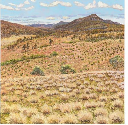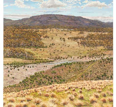 As the artist points out, ‘I have been making paintings for years now of these special places that include the nearby property, Yambulla. The landholder, Jim Osborne, considers himself a temporary custodian in a long line of people who have cared for this particular patchwork of precious ecosystems. Eschewing the prevailing paradigms he combines old ways and new ways to make this land the best it can be. In my work I hope to capture the layers and light that reflect the valley’s role as a keeping place for the stories and knowledge of everyone who has walked across it. And demand us to consider our responsibility for protecting its future.