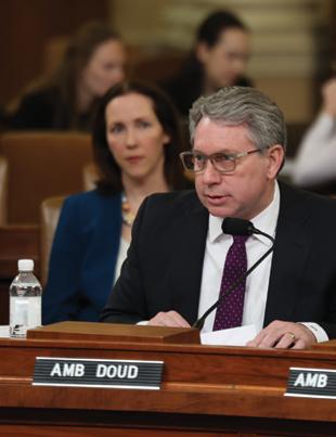 Pictured right: Doud testifies at a House Ways and Means Trade Subcommittee hearing.