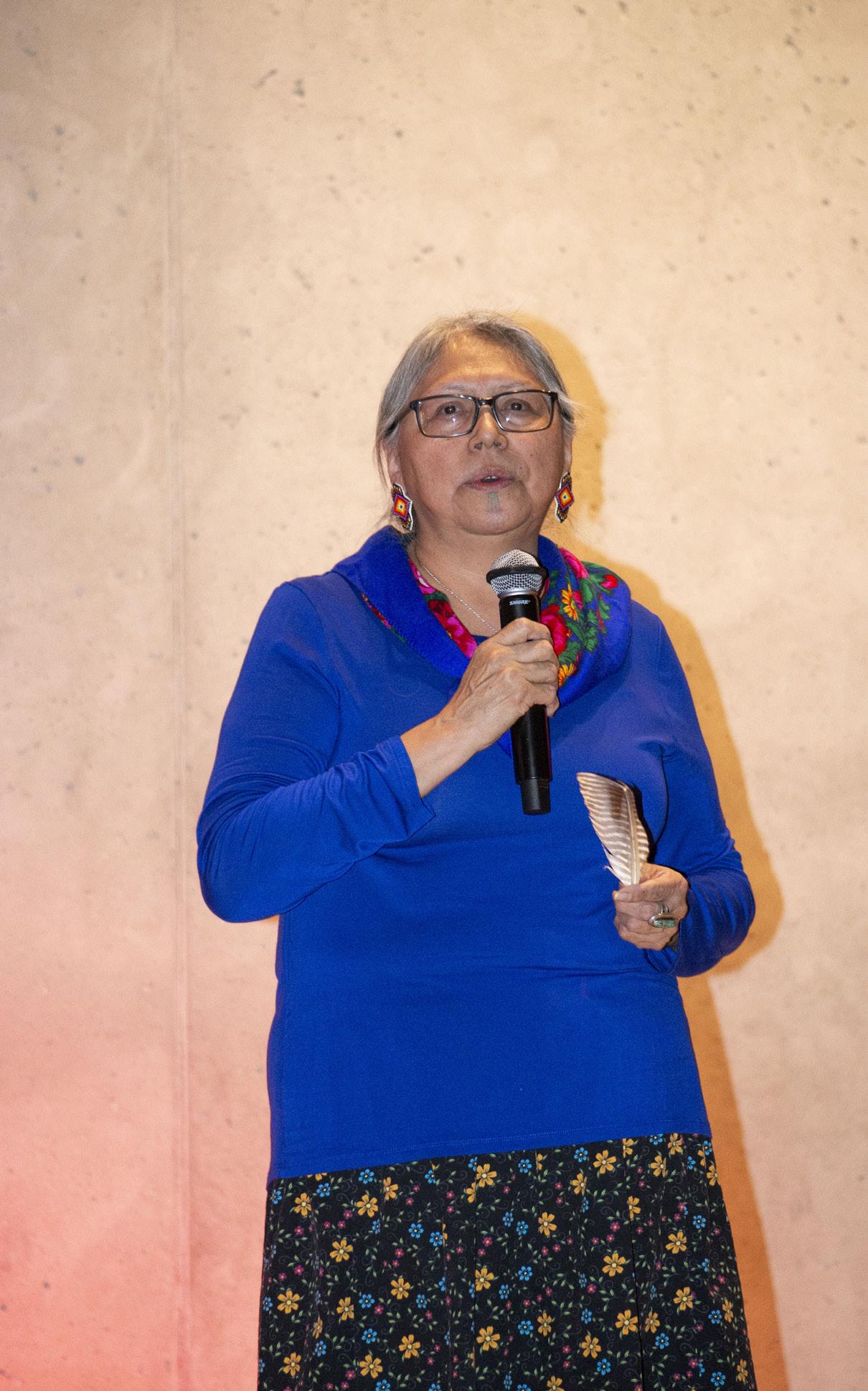 Julia Ogina brought her drumming group, comprised of three generations of her family, from Cambridge Bay. Cloutier described Ogina as “a powerhouse who has worked very hard to preserve and promote old traditional songs within her family and community.” The event was held just as her community was welcoming the return of the sun after weeks of polar night.