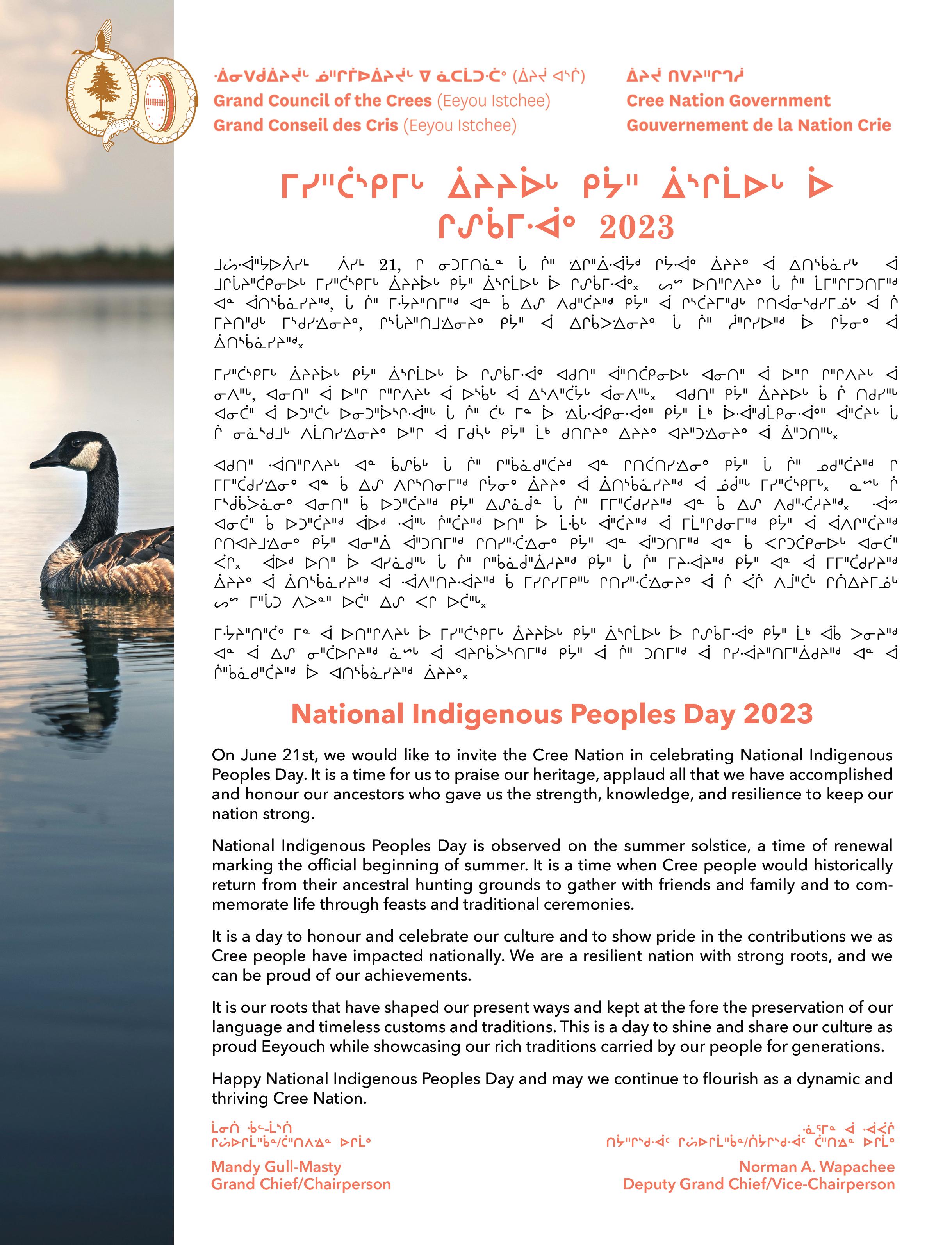 T T T To our Cree clients we wish a happy Goose Break. ᓂᐱᑯᓵᔨᒫᓈᓂᒡ ᒥᓯᐙ ᐄᔨᔨᐅᒡ ᐋ ᐋᐱᑎᔒᔥᑑᒋᐦᒡ ᒑ ᒥᔻᔨᐦᑎᐦᒡ ᐋ ᓅᒋᐱᔮᓱᐙᒡ᙮ Proudly serving First Nations since 1984 1-800-361-1402 admin@abenaki.com www.abenaki.com