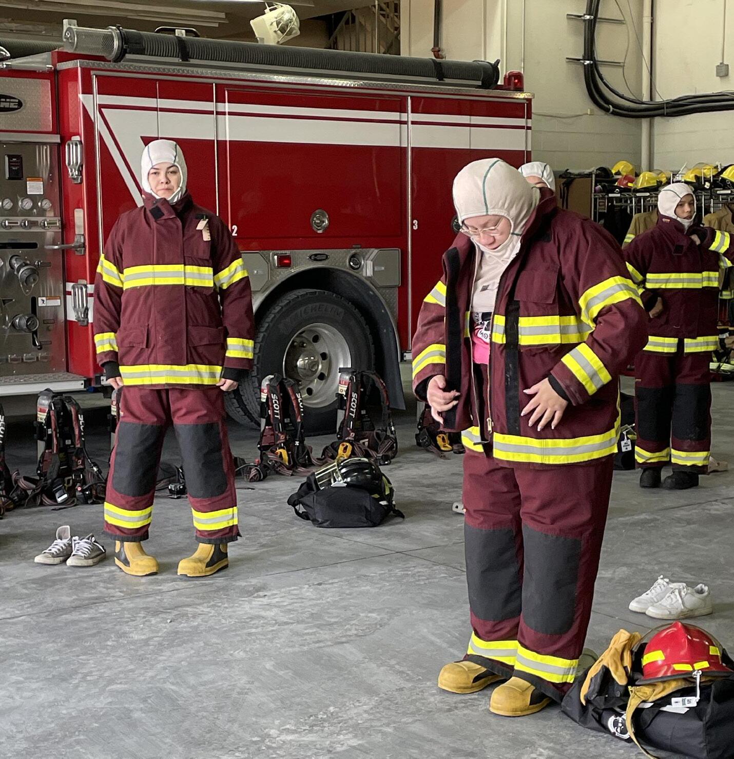 “I mostly work in the office, so it was fun [and exhausting] to get back into my bunker gear,” remarked Ottereyes. “And it was really special to do the fire exercises with my daughter Mercedes.”